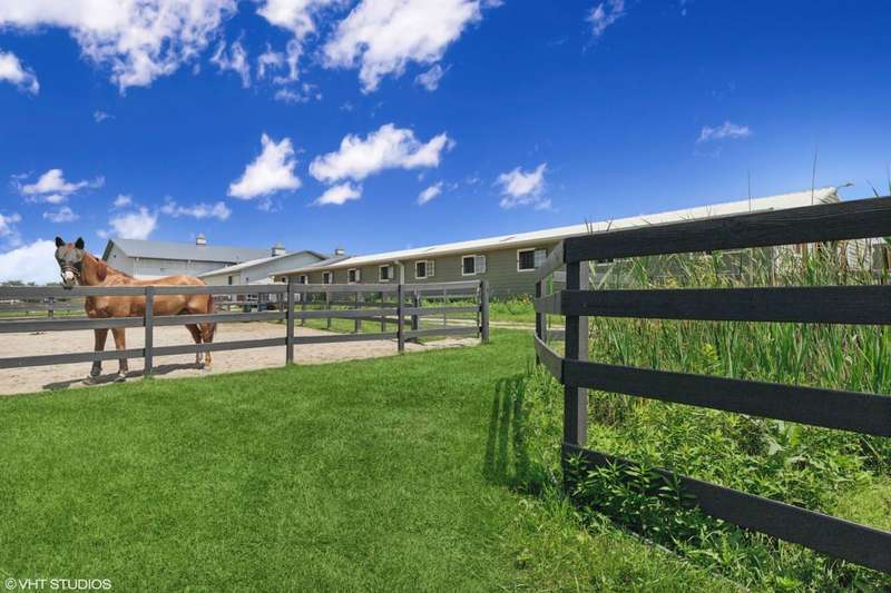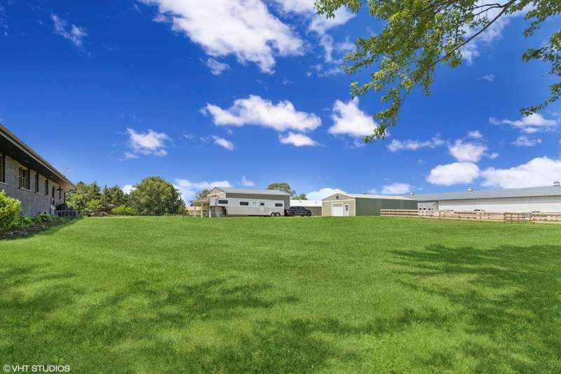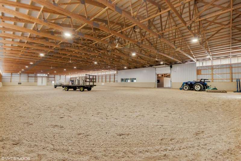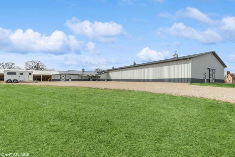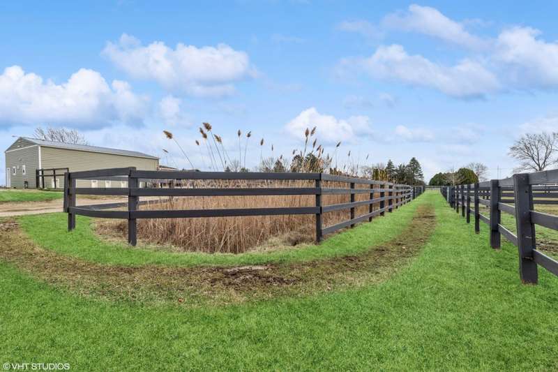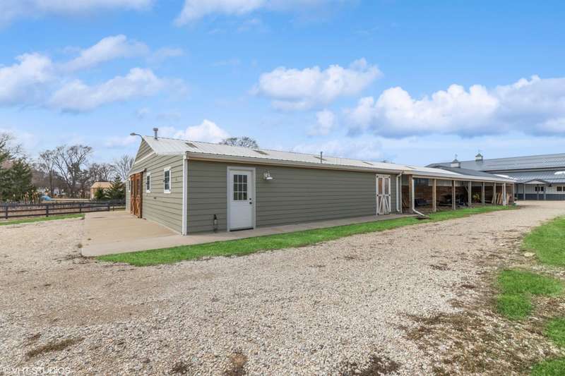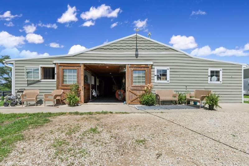 Stunning State of the Art Equestrian Facility on 15 beautiful acres with Ag Zoning! 21 stall, heated stable connected to BRAND NEW indoor riding arena (Morton Building 80x200x16) with GGT Equestrian Footing for elevated performance and safety. Brand new Viewing Room (Heated & AC), Tack Room, Wash and Farrier Stalls, Heated Laundry and Bath Rooms. BRAND NEW Outdoor Riding Arena (100x200) with sprinkler system and GGT Footing. Bunk House to sleep 5 with break room and kitchenette. Metal Hay Barn (40x60). 7 Grass Paddocks and 2 All-Weather Paddocks. Completely upgraded infrastructure-new well, septic, electrical and retention ponds per county code. PLUS a beautiful updated RANCH style home for yourself or your trainer/manager with fully finished basement with bedroom/bathroom! Don't miss this exquisitely updated farm where every detail has been thought of! Dreaming of your own ranch? THIS is the ONE! Located 30 minutes from O'Hare Intl Airport