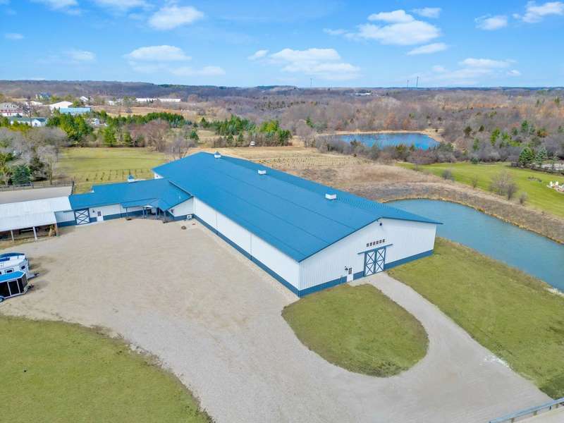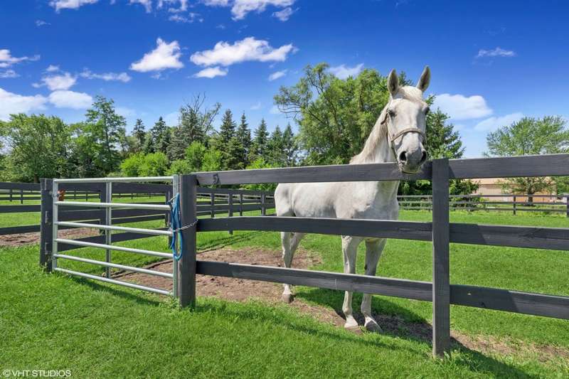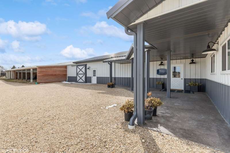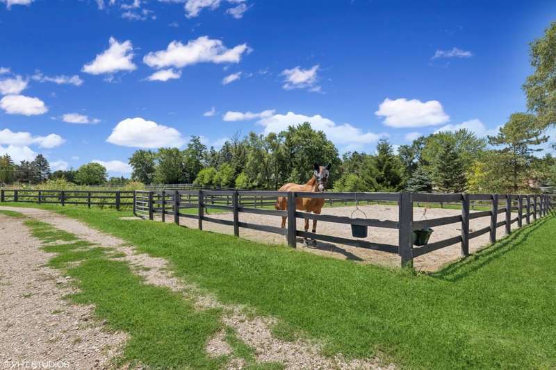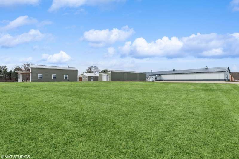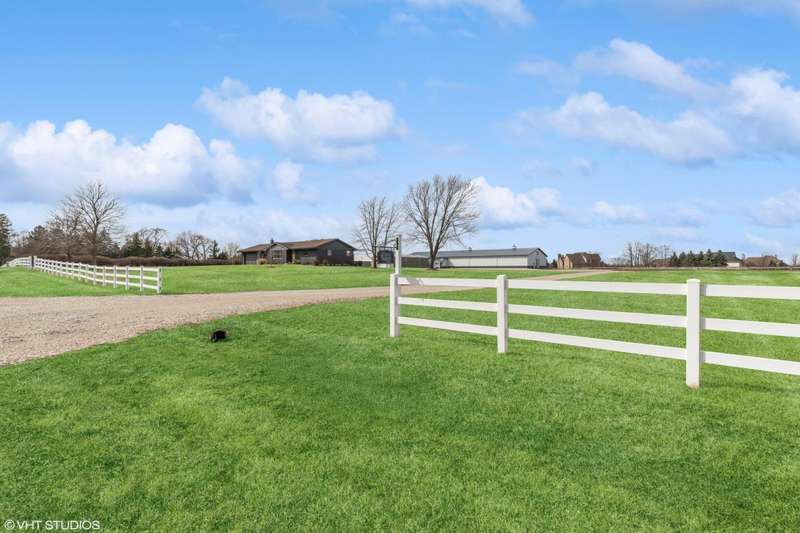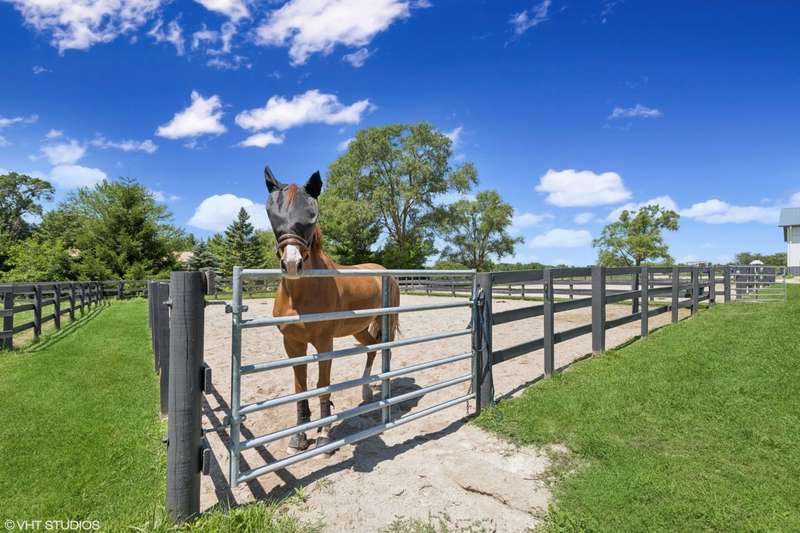 Stunning State of the Art Equestrian Facility on 15 beautiful acres with Ag Zoning! 21 stall, heated stable connected to BRAND NEW indoor riding arena (Morton Building 80x200x16) with GGT Equestrian Footing for elevated performance and safety. Brand new Viewing Room (Heated & AC), Tack Room, Wash and Farrier Stalls, Heated Laundry and Bath Rooms. BRAND NEW Outdoor Riding Arena (100x200) with sprinkler system and GGT Footing. Bunk House to sleep 5 with break room and kitchenette. Metal Hay Barn (40x60). 7 Grass Paddocks and 2 All-Weather Paddocks. Completely upgraded infrastructure-new well, septic, electrical and retention ponds per county code. PLUS a beautiful updated RANCH style home for yourself or your trainer/manager with fully finished basement with bedroom/bathroom! Don't miss this exquisitely updated farm where every detail has been thought of! Dreaming of your own ranch? THIS is the ONE! Located 30 minutes from O'Hare Intl Airport