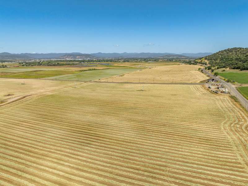 Welcome to the South Parcel of the Foothills Irrigated Farm—nearly 140 acres of productive ground with 133.5 acres of Medford Irrigation District water rights, ponds, and efficient layout for farming. A gently rising southern knoll offers panoramic views of the Table Rocks and surrounding valley, presenting a potential homesite location (buyer to do due diligence; not yet applied for). The mostly Class III soils support diverse agricultural uses, and infrastructure includes nearby city water, three-phase power, and gravity-fed mainlines. With excellent visibility at the corner of Foothill and Vilas Roads, the property also offers strong potential for a farm stand or other ag business. Conveniently located just minutes from Medford, I-5, and the Rogue Valley International Airport, this property blends rural beauty, utility, and access in one of Southern Oregon's most desirable agricultural regions.