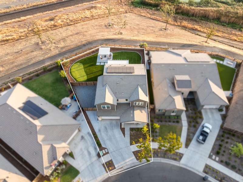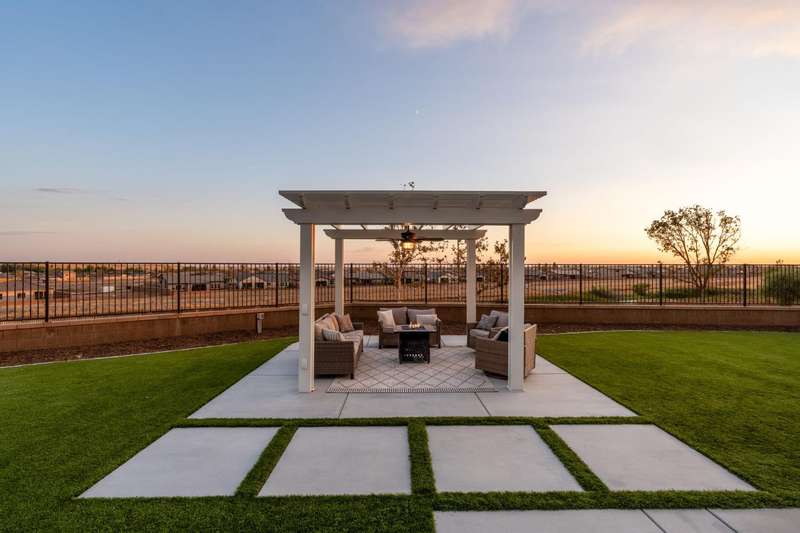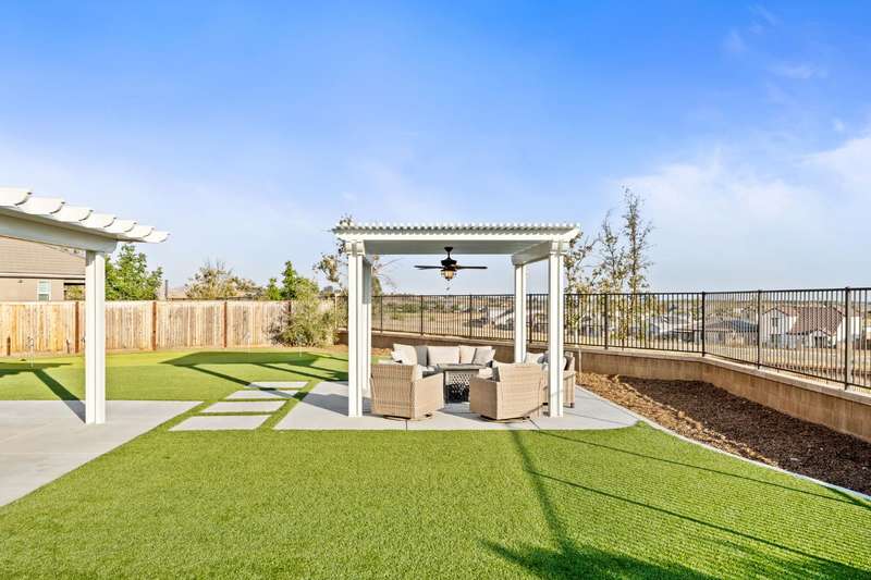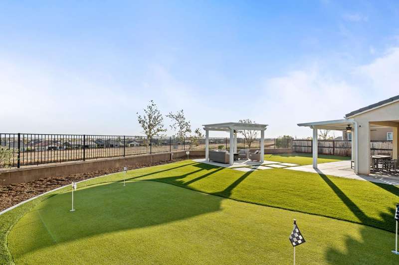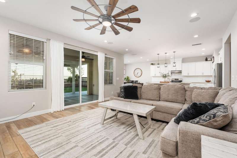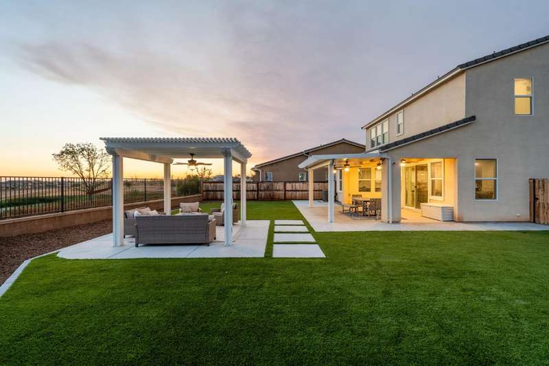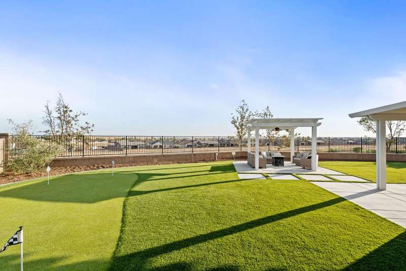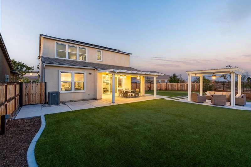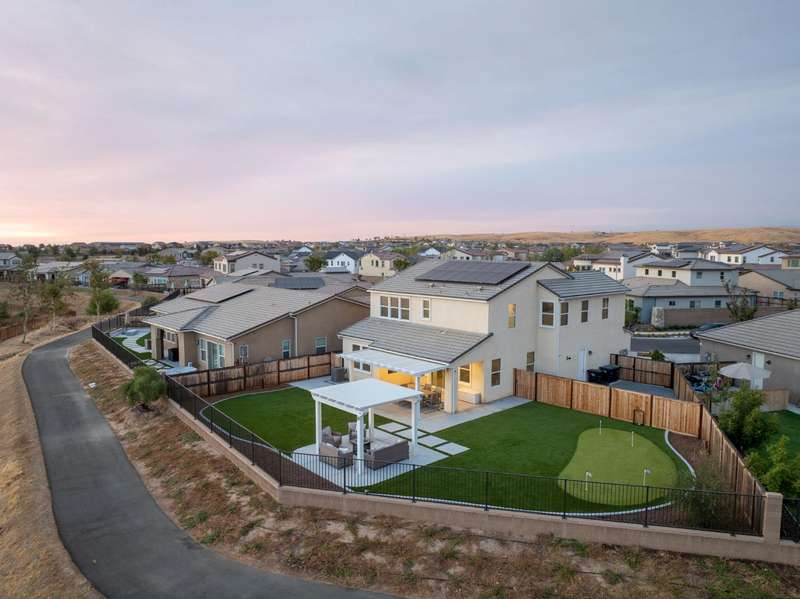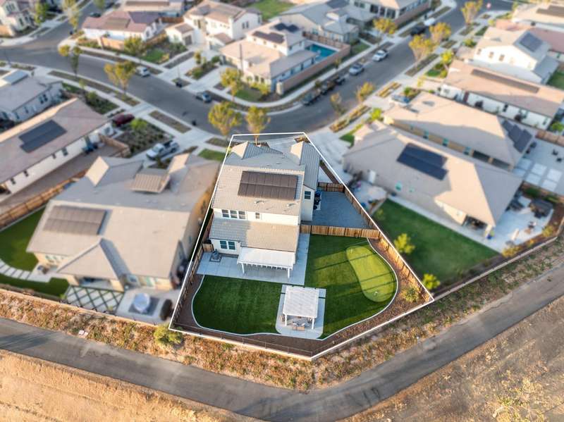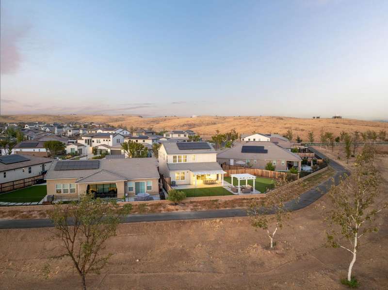 Welcome to this beautifully designed 2022 McCaffrey (Dylan floor plan) home, where modern comfort meets outdoor luxury in Tesoro Viejo! This thoughtfully crafted residence features 4 spacious bedrooms, 3 bathrooms, and a versatile upstairs loft. Nestled on a generous pie-shaped lot with a rare 105-foot fence line and stunning views!Step inside to a bright and airy interior, with expansive windows that fill the home with natural light. The open-concept main level creates a warm and inviting atmosphere, ideal for both everyday living and entertaining. The kitchen is a chef's delight, offering abundant cabinetry, ample counter space, and a large walk-in pantry. The living room features built-in surround sound and serene backyard views, all from the comfort of your couch. A conveniently located bedroom and full bathroom on the main level provide flexibility for guests or multi-generational living.Upstairs, you'll find a well-designed layout featuring an open loft, perfect for a second living area, playroom, or home office - along with a full bathroom and two well-sized bedrooms. The primary suite is a true sanctuary, offering sweeping views and a spa-inspired ensuite complete spacious walk-in closet.Situated on a rare pie-shaped lot, the backyard is truly a showstopper. Enjoy breathtaking south-facing rolling hills views from your private gazebo, or sharpen your short game on the custom 4-hole putting green. The built-in outdoor speaker system sets the perfect mood for unforgettable gatherings. The covered patio is pre-wired for your dream outdoor BBQ kitchen. Plus, there's ample storage through the 15-foot double swing-gate on the side yard for all your adventure gear! Energy-efficient owned solar panels provide year-round savings and sustainability. Smart home features include a comprehensive security system with exterior cameras and interior window sensors and motion detection. Enjoy seamless automation and remote monitoring of the garage door and thermostats for enhanced convenience and peace of mind.Experience resort-style living of Tesoro Viejo, the ultimate staycation! The Ranch House'' features a luxe clubhouse, swimming pool, fire-pit lounge areas, and more. Explore scenic trails, visit neighborhood parks, and enjoy vibrant community events including farmers markets, outdoor concerts, and seasonal festivities.This is more than a home, it's a lifestyle. Come experience it for yourself!