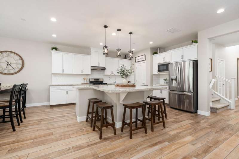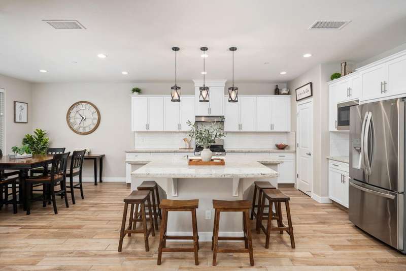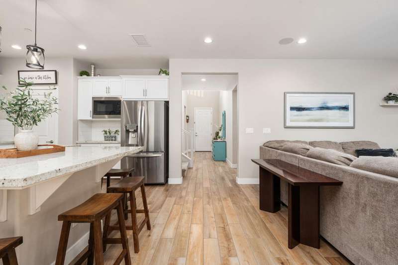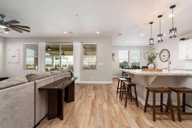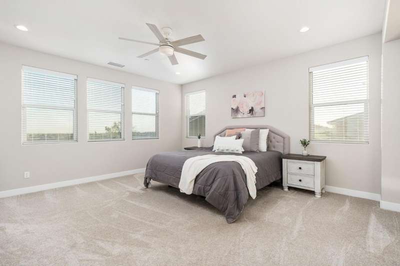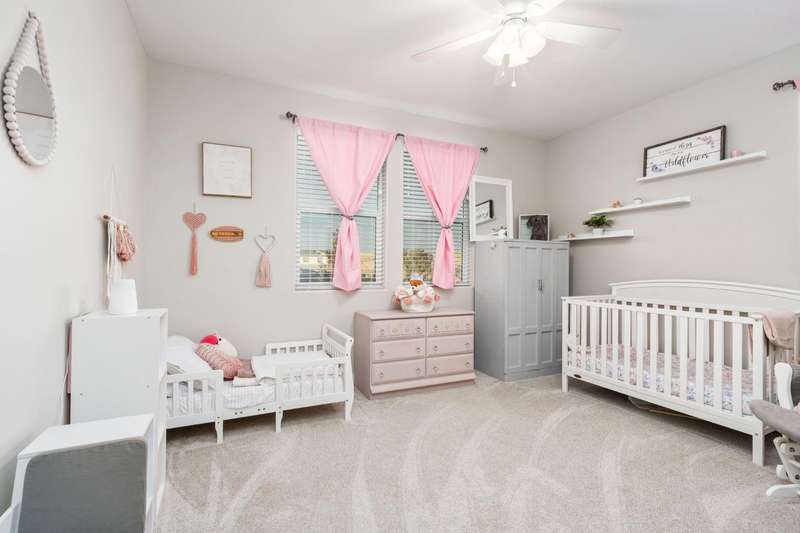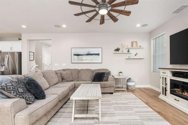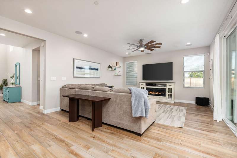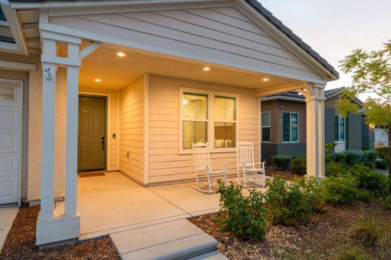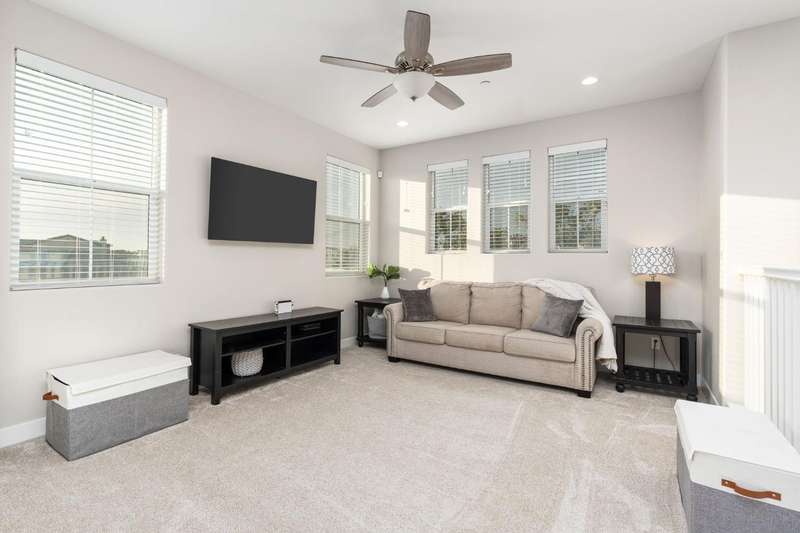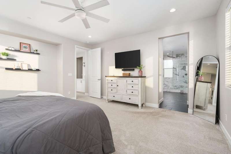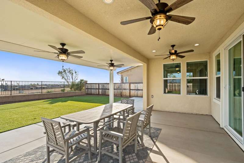 Welcome to this beautifully designed 2022 McCaffrey (Dylan floor plan) home, where modern comfort meets outdoor luxury in Tesoro Viejo! This thoughtfully crafted residence features 4 spacious bedrooms, 3 bathrooms, and a versatile upstairs loft. Nestled on a generous pie-shaped lot with a rare 105-foot fence line and stunning views!Step inside to a bright and airy interior, with expansive windows that fill the home with natural light. The open-concept main level creates a warm and inviting atmosphere, ideal for both everyday living and entertaining. The kitchen is a chef's delight, offering abundant cabinetry, ample counter space, and a large walk-in pantry. The living room features built-in surround sound and serene backyard views, all from the comfort of your couch. A conveniently located bedroom and full bathroom on the main level provide flexibility for guests or multi-generational living.Upstairs, you'll find a well-designed layout featuring an open loft, perfect for a second living area, playroom, or home office - along with a full bathroom and two well-sized bedrooms. The primary suite is a true sanctuary, offering sweeping views and a spa-inspired ensuite complete spacious walk-in closet.Situated on a rare pie-shaped lot, the backyard is truly a showstopper. Enjoy breathtaking south-facing rolling hills views from your private gazebo, or sharpen your short game on the custom 4-hole putting green. The built-in outdoor speaker system sets the perfect mood for unforgettable gatherings. The covered patio is pre-wired for your dream outdoor BBQ kitchen. Plus, there's ample storage through the 15-foot double swing-gate on the side yard for all your adventure gear! Energy-efficient owned solar panels provide year-round savings and sustainability. Smart home features include a comprehensive security system with exterior cameras and interior window sensors and motion detection. Enjoy seamless automation and remote monitoring of the garage door and thermostats for enhanced convenience and peace of mind.Experience resort-style living of Tesoro Viejo, the ultimate staycation! The Ranch House'' features a luxe clubhouse, swimming pool, fire-pit lounge areas, and more. Explore scenic trails, visit neighborhood parks, and enjoy vibrant community events including farmers markets, outdoor concerts, and seasonal festivities.This is more than a home, it's a lifestyle. Come experience it for yourself!