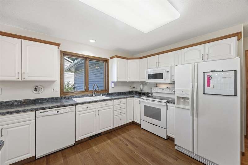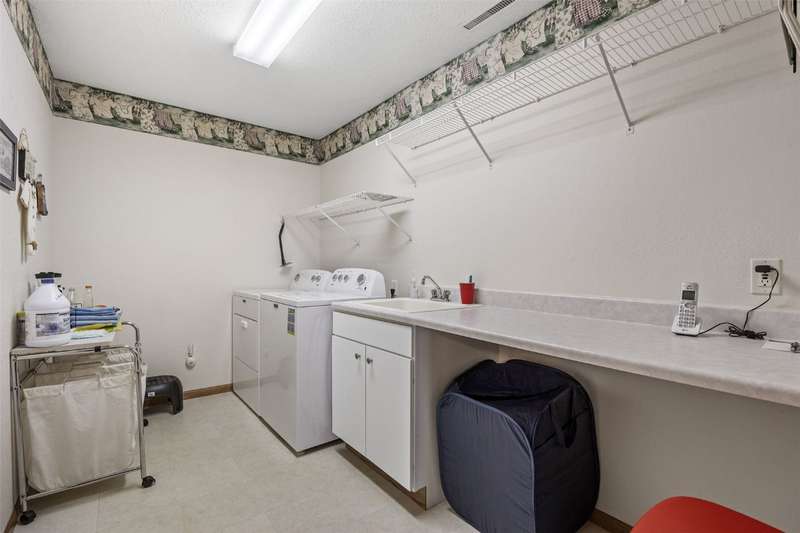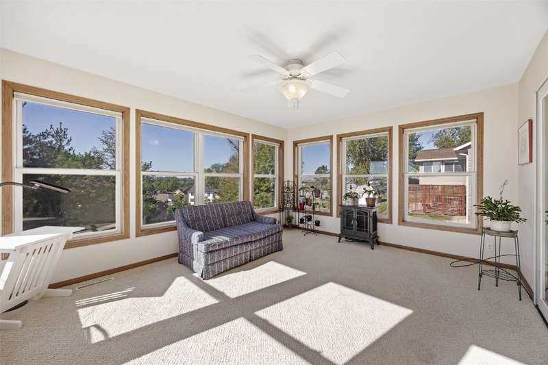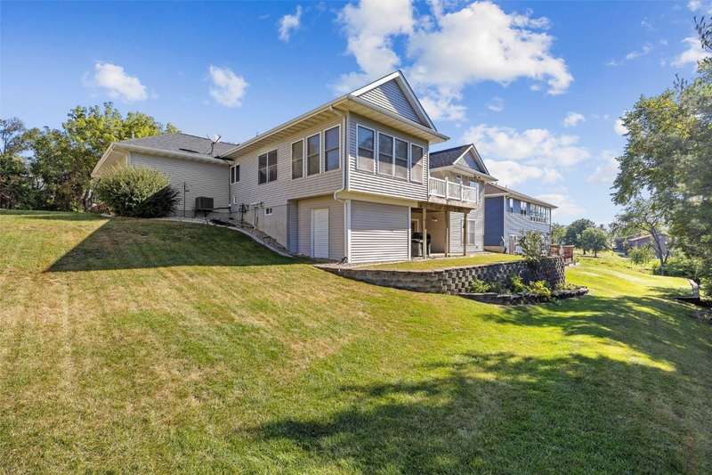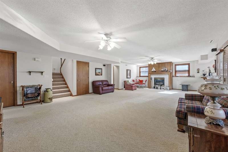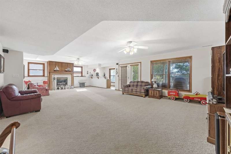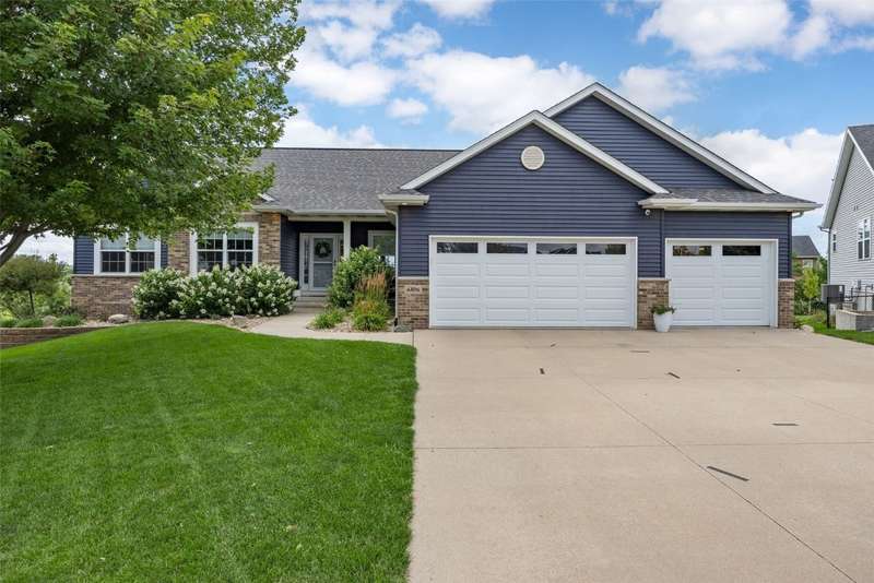 Nestled on a peaceful wooded lot, this custom-built ranch is ready to welcome its new owners! The main level offers an open floor plan with a spacious living room that flows into the kitchen, complete with a large island/breakfast bar and pantry. Just off the dining area, you’ll find a cozy 4-season room with access to the deck - perfect for enjoying morning coffee or quiet evenings. Beautiful oak flooring runs throughout the kitchen, entry, hallway, and two generously sized main-floor bedrooms. The primary suite features a walk-in closet and an ensuite bath with a jetted tub. A second full bath includes a large vanity and walk-in shower. The walk-out lower level is ideal for entertaining with a huge rec room, gas fireplace, and wet bar. A third full bath is conveniently located near the rec room and the spacious third bedroom with walk-in closet. Step outside to enjoy quiet nights on the deck or the patio below. Storage won’t be a concern here, with options under the 4-season room, beneath the stairs, in the laundry and utility room, and in the heated 3-car attached garage complete with overhead shelving and a workbench. You’ll love the comfort, space, and privacy this home provides! New roof and siding repairs after the derecho. Inspections are for buyer’s informational purposes only; property to be sold in as-is condition.
