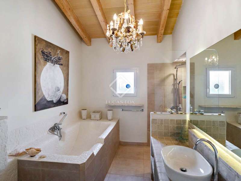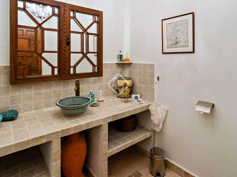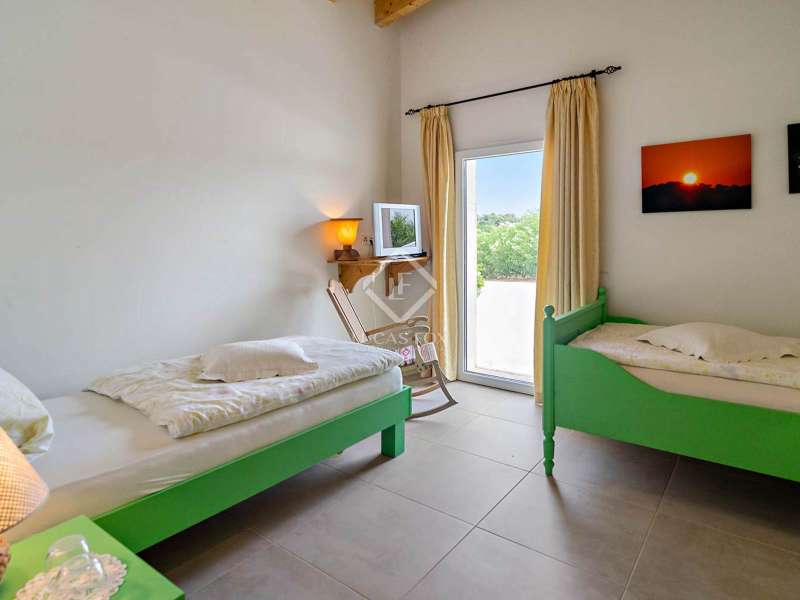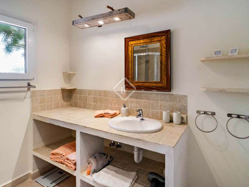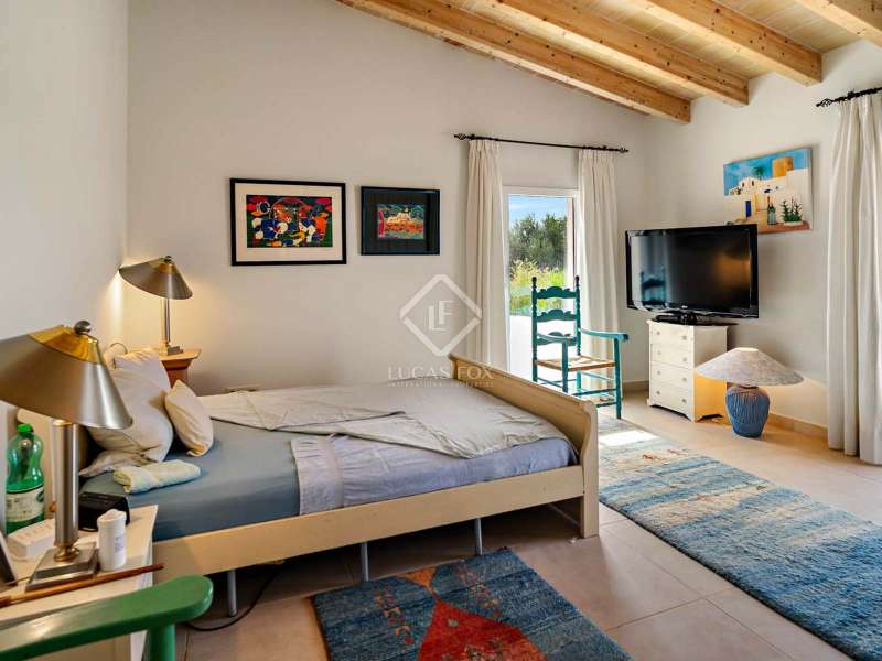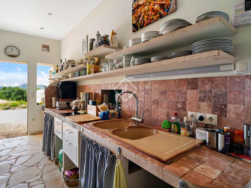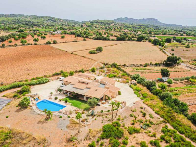 The property boasts a generous 23,268 m² plot with a spacious 354 m² home, including a 51 m² summer kitchen designed for year-round use. Built on a single level, the house is ideal for all ages and accessible to those with limited mobility. It features four large bedrooms, each with an en-suite bathroom. Two of the bedrooms have separate entrances and an additional living room, providing extra privacy for guests. The main suite includes a spacious dressing room, en-suite bathroom, and picturesque views of Sant Salvador from the bed. Additional highlights include a large two-car garage and a maintenance room. The home is equipped with underfloor heating, air conditioning, and triple-glazed windows for optimal comfort and energy efficiency. Solar panels and a private well ensure complete self-sufficiency. Outside, we find several covered terraces for shaded relaxation, an infinity pool with sweeping views of the Tramuntana mountains, and a traditional wood-burning oven for homemade pizzas. The beautifully landscaped Mediterranean garden, filled with palm trees and native plants, creates a serene oasis. This property seamlessly combines tradition, elegance, comfort, and panoramic views, making it an exceptional opportunity not to be missed. Please contact us for further information about this stunning property for sale in Son Prohens, offering luxury living with breathtaking views of the distant Tramuntana mountains.