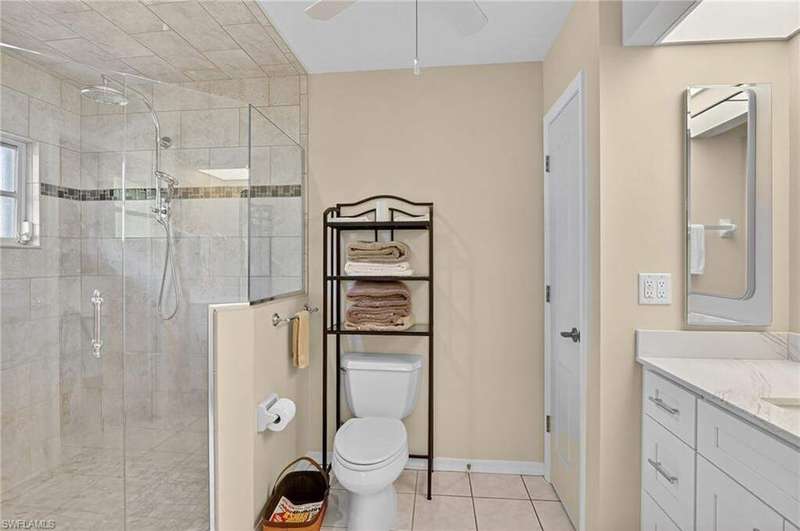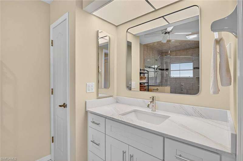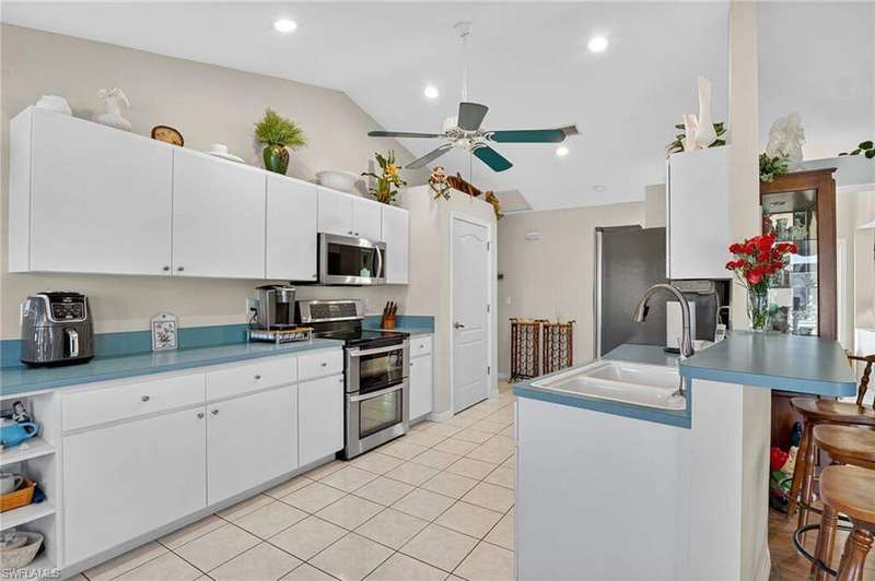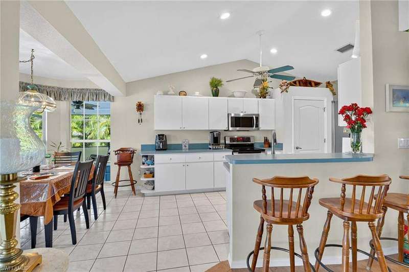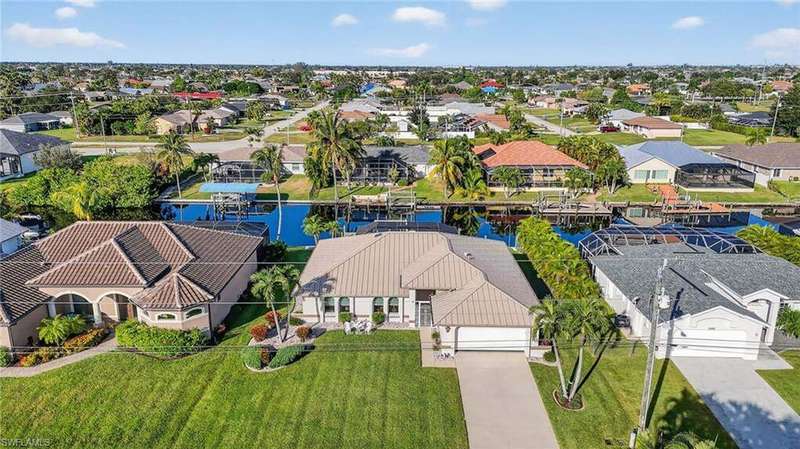 Welcome to your Florida dream home! This stunning Gulf-access pool home offers 3 bedrooms plus a den and 2 beautifully remodeled bathrooms. Enjoy effortless boating with your captain's walk dock, 10,000 lb. lift, allowing a quick take off in your boat to enjoy the day at one of our nearby islands. Close to multiple beaches at Sanibel, Captiva, Fort Myers Beach or continue on to Naples beaches. A fisherman's dream! Step inside to soaring cathedral ceilings and an open-concept living area flooded with natural light from multiple sets of sliders that lead out to the sparkling pool. The owner's suite is a true retreat, featuring surround sound, a California-style designer closet, and private access to the lanai. Tile and wood-look tile throughout. This home is packed with upgrades that offer peace of mind and energy efficiency, including: * Newly remodeled bathrooms * Variable-speed Trane A/C for low electric costs * Accordion shutters on every window & electric automatic metal shutters in the lanai * Electric surge protectors * Exterior watertight plugs outside garage & in lanai for Hot Tub and generator * Seamless METAL ROOF with solar panel attic vent * Electric, hurricane-rated garage door * New water heater & saltwater pool system * New front Anderson Hurricane rated windows * Green Egg BBQ * Ceiling fans throughout The seamless Metal Roof and large lanai under truss is built for strength & durability. Electric automatic metal shutters in lanai for extra security. Barbecue while you fish on your private dock in your own backyard. Whether you're relaxing poolside, cruising the canals, or simply enjoying your serene surroundings, this home offers the perfect blend of luxury, comfort, and Florida lifestyle. Come experience this gorgeous Gulf-access gem for yourself-you're sure to fall in love at first sight. Be sure to click on more/special features to watch our virtual tour #2/video.