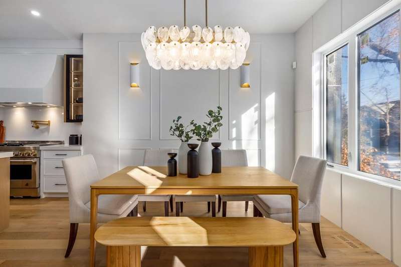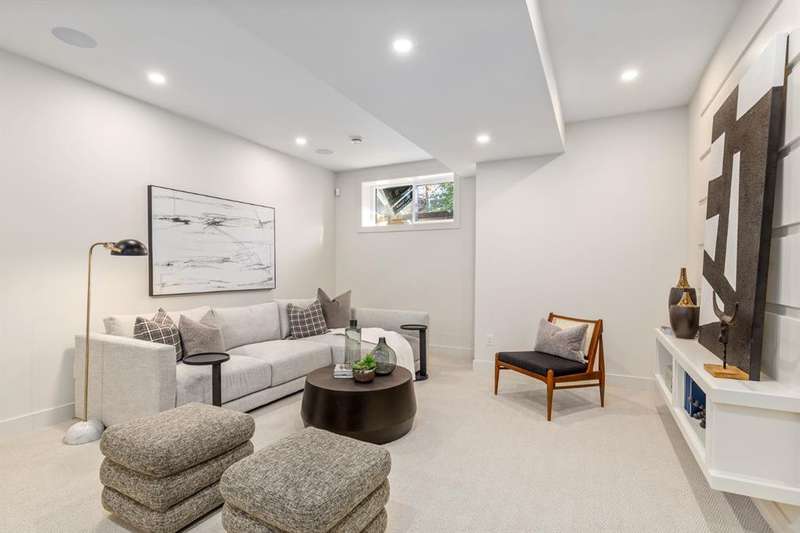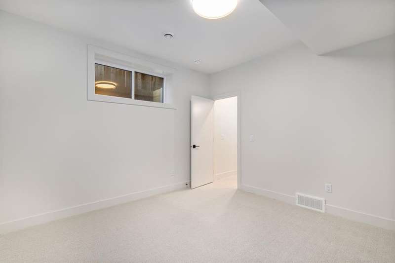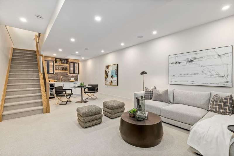 OPEN HOUSE Sun Nov 30th 12-3PM! Experience elevated inner-city living with this impeccably designed, brand-new home nestled in one of Calgary’s most sought-after neighbourhoods: Hillhurst. Constructed by a trusted local builder known for craftsmanship, functionality, and aesthetic excellence, this 2-storey residence offers 2,224 SF above grade, with a fully developed basement, 4 bedrooms, and 4.5 bathrooms—a perfect blend of modern luxury and thoughtful detail. From the striking brick facade to the high-end engineered wide plank oak hardwood, every inch of this home exudes quality. The main floor welcomes you with a built-in entry feature and a front formal dining area, accented by elegant wall mouldings, white and gold sconces, and a designer chandelier. At the other end, an open-concept living room is a showstopper, featuring a large-format textured tile fireplace, custom built-ins with display lighting, and massive patio sliders leading to a west-facing, 135-ft deep backyard with a raised patio and gas line—ideal for indoor-outdoor entertaining. The chef’s kitchen is nothing short of stunning, complete with a 2.5" thick quartz island, panel-ready fridge/freezer with knurled handles, sleek quartz countertops, a gas range with pot filler, and backlit display cabinets framing the custom hood fan. You’ll also find a farmhouse sink, full slab backsplash, hidden coffee/appliance nook, built-in pantry, and a drawer-style microwave—each designed to inspire culinary creativity. Tucked behind a barn-style sliding door, the den offers a quiet workspace with a built-in desk, shelving, and bright window. The mudroom, also with a barn door, features tiled flooring, a built-in bench, and a large closet for seamless organization. Upstairs, each of the three spacious bedrooms come with walk-in closets and custom built-ins, along with private ensuites. The primary is sure to impress with vaulted ceilings, a LED-lit feature wall, statement gold light fixture, and a spa-inspired ensuite that boasts a steam shower, dual vanities, and a standalone soaker tub with dramatic black and white tile wall backdrop. A nearby laundry room offers convenience with a sink, folding station, shelving, and tile backsplash. The fully finished, carpeted basement, with 9-ft ceilings, is roughed in for in-floor heating and designed for comfort and versatility—featuring a spacious rec area, a TV wall with built-in components, a wet bar with lit display shelves and tile flooring, a full bath, and a large fourth bedroom with built-ins including a desk. An efficient mechanical room completes the lower level, with additional upgrades including solid core doors and built-in speakers throughout the entire home. Perfectly situated just steps from shops along 14 St NW and walking distance to Kensington Village, Calgary’s extensive river pathways, and the Downtown Core—this is urban luxury at its finest. Act now and make this exceptional Hillhurst property your forever home.