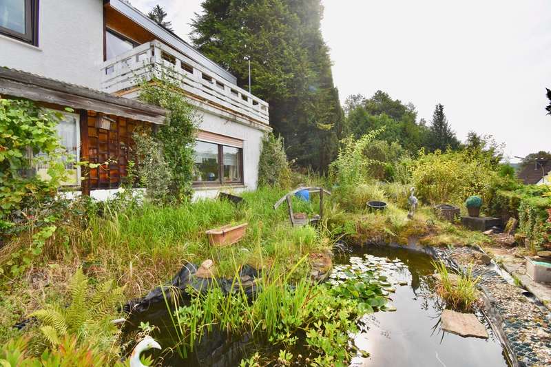 The detached house in need of renovation is located on a plot of approx. 1022 m² and was built in 1971 as a solid construction. The house has two separate residential units that can be used jointly or by two parties. The double-glazed thermal wooden windows from 1990 ensure good insulation, while partially single-glazed wooden windows and glass blocks provide natural light. The house has a total of 6 rooms, including 4 bedrooms and 2 bathrooms. The floor coverings vary between laminate, tiles, carpet, vinyl and cork. The Buderus oil heating system from 1998 provides cozy warmth throughout the house. A fireplace on the first floor in the living area provides additional coziness. This should be removed first. A terrace with a view of the garden pond invites you to spend cozy hours outdoors, while a balcony offers a beautiful view over the Flörsbach valley. The three garages provide ample space for vehicles and additional storage space. The property also includes a spacious courtyard with plenty of parking spaces. The condition of the property is not up to date, so refurbishment and renovation work is necessary to make the house shine in new splendor. Overall, this detached house with a large plot offers plenty of potential for creative design options and invites you to realize your own personal dream home. Arrange a viewing appointment today and see the possibilities of this property for yourself.