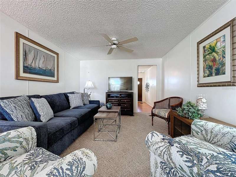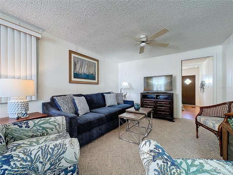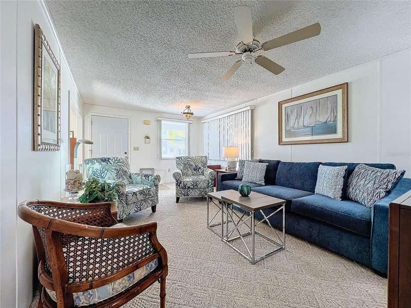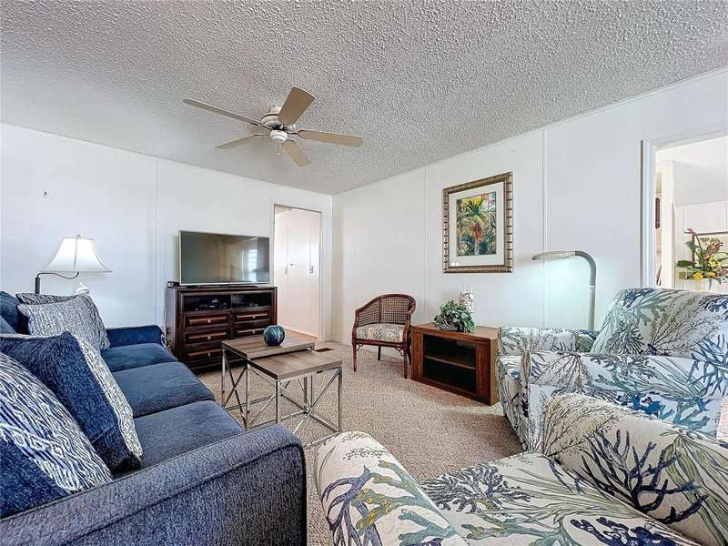 BRING YOUR OFFER ON THIS CHARMING MOBILE HOME IN AN ACTIVE 55+ COMMUNITY. This home features a comfortable living room with newer furniture, a spacious dining room, and primary bedroom with two large closets. 1 1/2 baths. The main bathroom has tub/shower combo. The second bedroom also has laundry and an en suite half bath. Appliances included. Well kept and sold turn-key. Paved patio area behind the home and a front deck with composite deck boards. Metal roofover, central A/C (2019). Sugar Creek Country Club has NO LOT RENT and low fees of just $525/quarter. Fees include water, sewer, trash, grass mowing, internet, & basic cable. The community features two swimming pools, heated spa, tennis & shuffleboard courts, workshop, fitness room, clubhouse, fishing pier, and many social activities through the winter season. Sold for CASH ONLY with right to inspect. Sorry this is not a pet lot. Don't let another winter keep you in the cold--start enjoying Florida today!