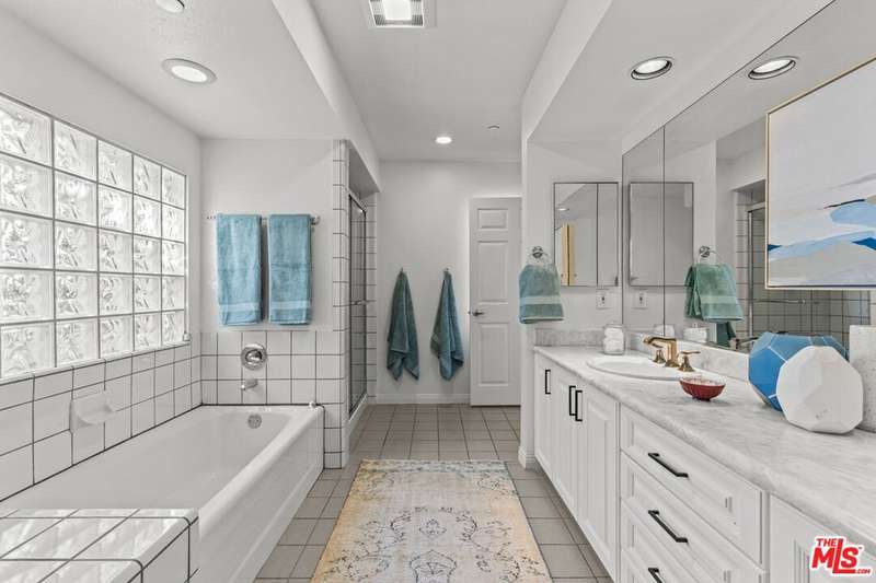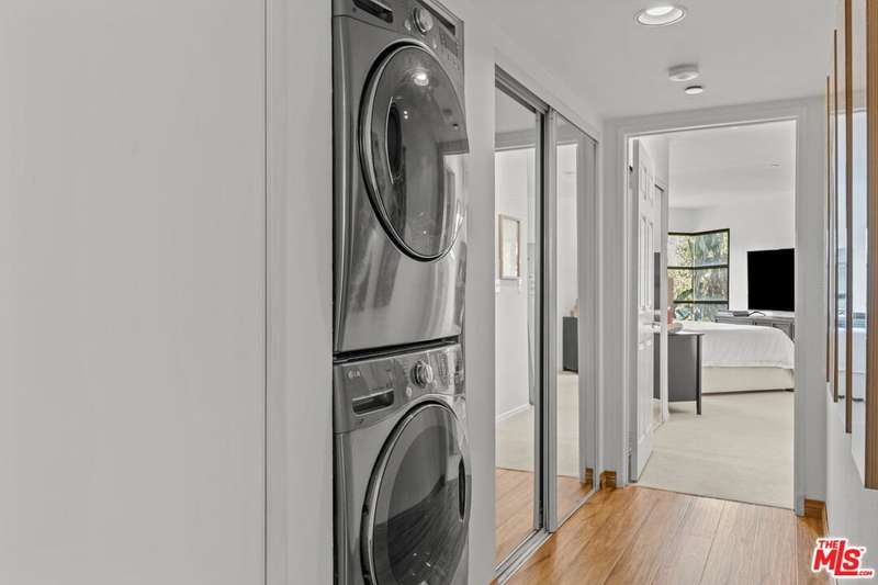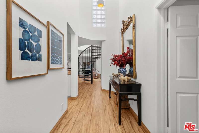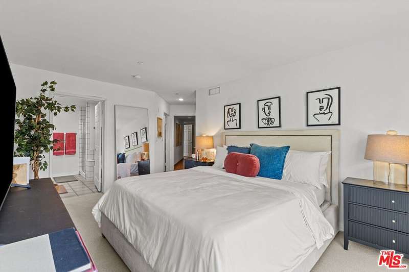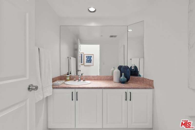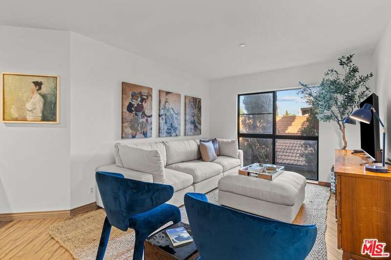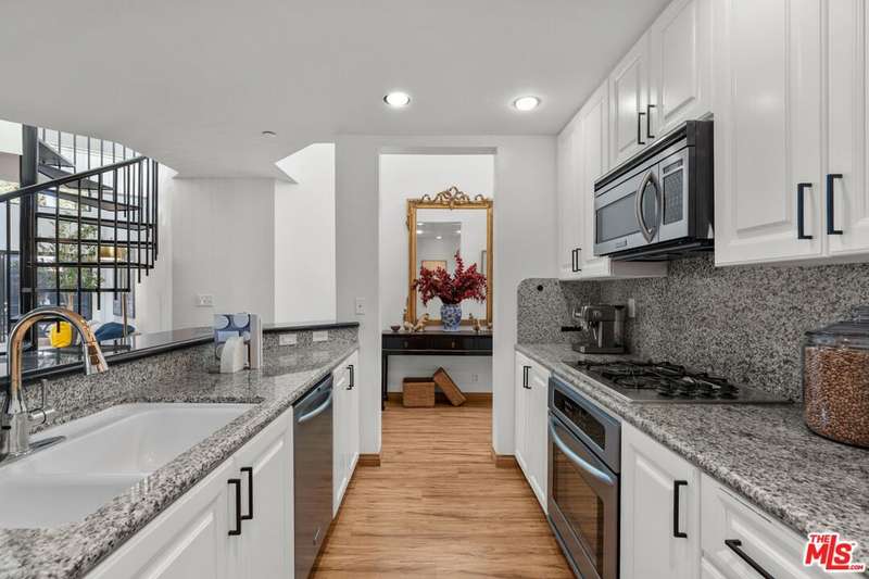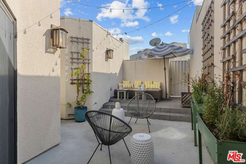 This bright and sophisticated 2-bed, 3-bath top-floor, front-facing corner unit offers the perfect mix of comfort, privacy, and style. High ceilings and large windows fill the home with natural light, while the open layout is ideal for both entertaining and everyday living. Each of the two bedrooms functions as a primary suite, complete with a walk-in closet and en suite bath for ultimate privacy, with one conveniently located on the main level and the other upstairs, plus a powder bath for guests. The kitchen opens to the living and dining areas and extends to a private balcony, perfect for morning coffee or evening relaxation. Upstairs, the spacious and private rooftop deck provides the perfect setting for outdoor dining or lounging under the stars. Additional highlights include in-unit laundry, gated parking, and access to the building's fitness room. Located just moments from Brentwood's best shops, restaurants, and cafes, this home combines modern design with an unbeatable location.