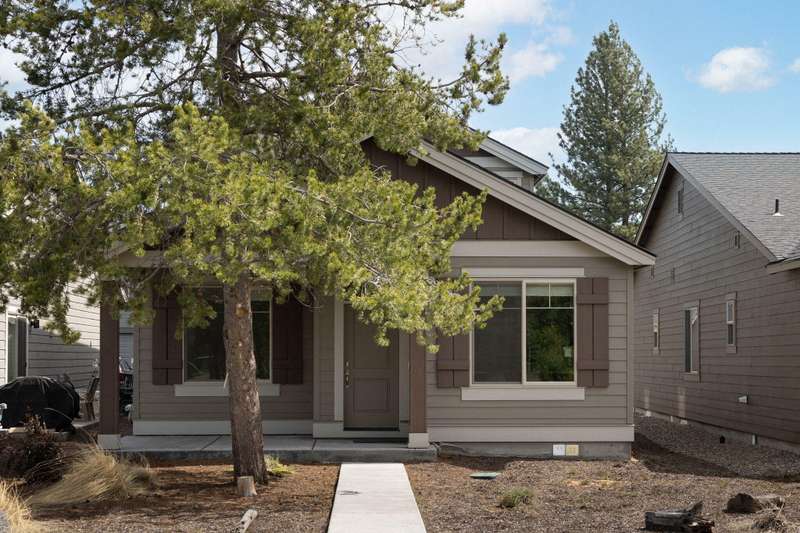 Owners offering direct financing at only 5% interest! This stylish 3-bed, 2.5-bath home in La Pine's Crescent Creek neighborhood offers 2,010 sqft of light, bright, and comfortable living space. Along with the primary bedroom and full bath, the downstairs features an open floor plan with a gas fireplace, high ceilings, custom window treatments, and a beautiful kitchen with quartz countertops, stainless steel appliances, a large island, and plenty of cabinet space. Upstairs features 2 spacious bedrooms and a full bath, as well as an additional open area that would be great to use as media room or additional living space. Outside the house is a nice covered patio, an in-ground irrigation system, and unobstructed views and access to an adjacent park that will make it easy to enjoy any time of year. Crescent Creek offers amenities such as a clubhouse, walking paths, an open park, and access to a trail system that connects to downtown La Pine. Call your broker to schedule a time to tour!