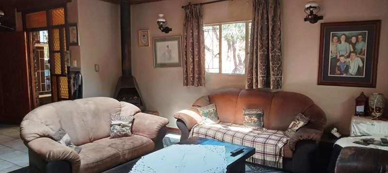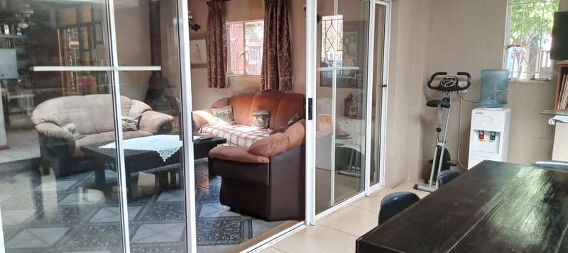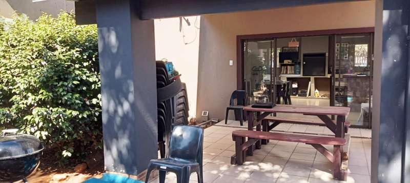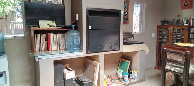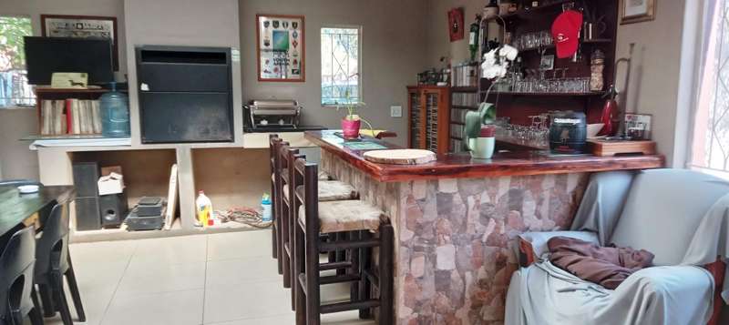 Lounge and dining room that opens with sliding doors to an enclosed entertainment area with a built in braai and a bar for the entertainer