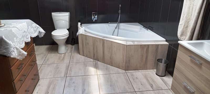 2 bathrooms, 1st bathroom bath, toilet and basin, 2nd bathroom bath, shower toilet and basin