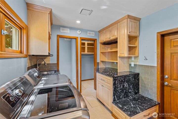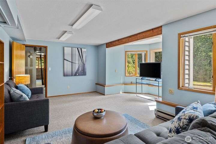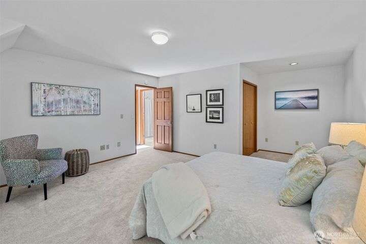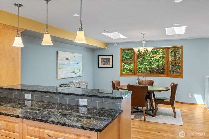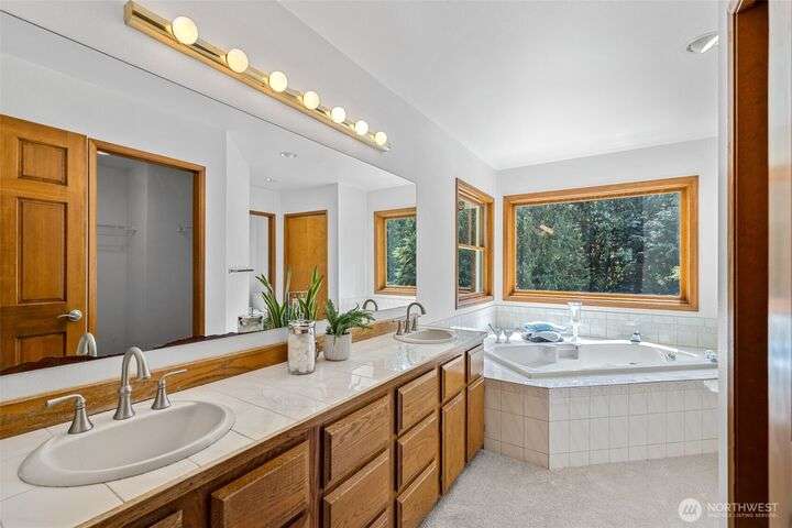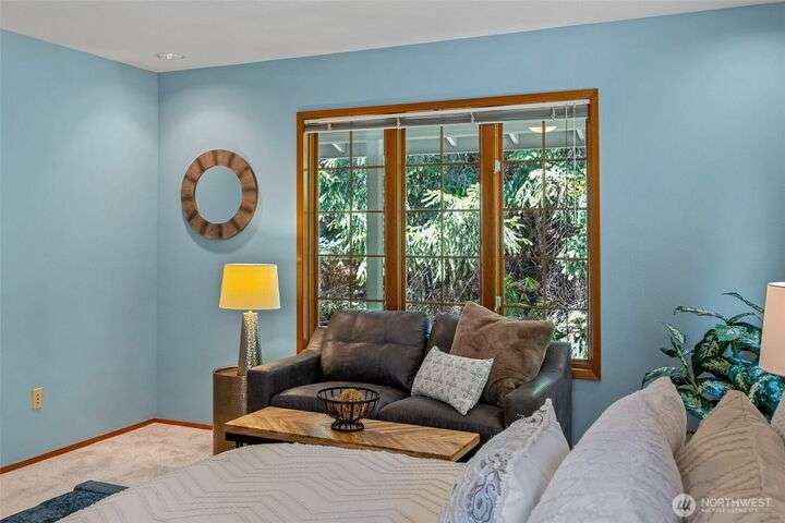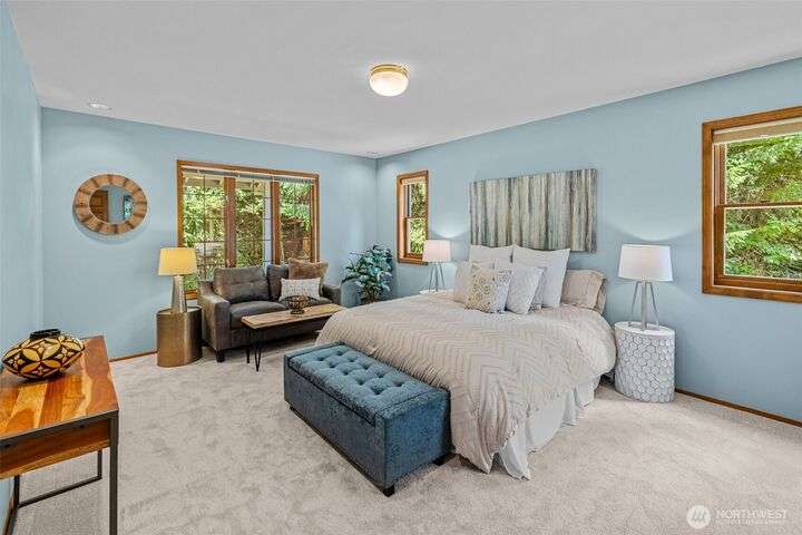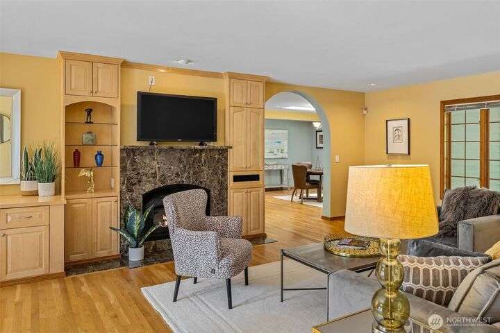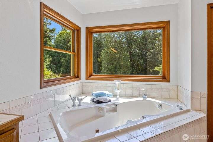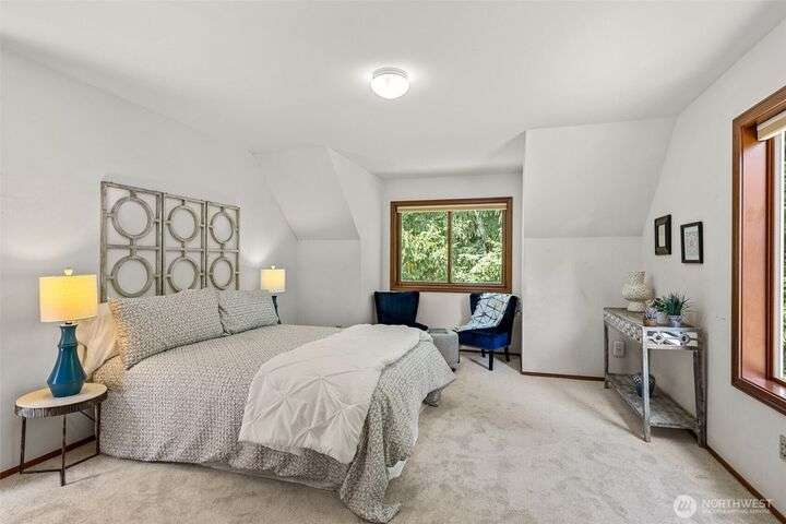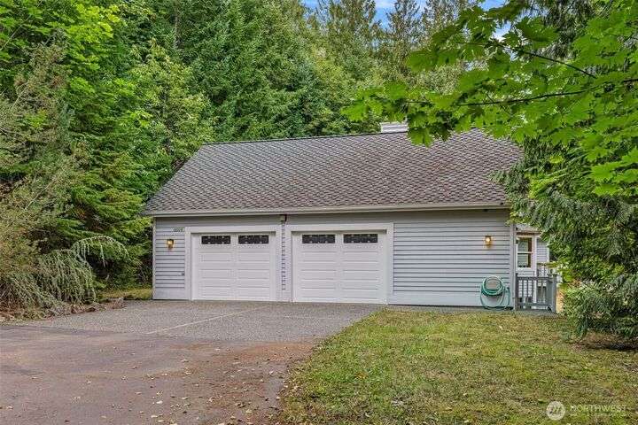 This stunning home on 4.3+ acres feels like a Private Estate! Circular driveway & covered front porch are just the beginning. Spacious living room with marble wood fireplace & hardwood floors. Formal dining room, chef's kitchen with a huge island with sink, breakfast bar, granite counters, double oven, two dishwashers, & 2 garbage disposals. Custom maple cabinets are featured in the kitchen, living room, & laundry room. Primary Suite with walk-in closet & jetted soaking tub. Brand new carpet just installed. The huge yard is sunny, private, and includes multiple fruit trees & plenty of space to garden. You will be awed at the peacefulness of this property. 570 sq ft 2-car garage has 2 50-amp electric car chargers. 20 minutes out of Seattle!