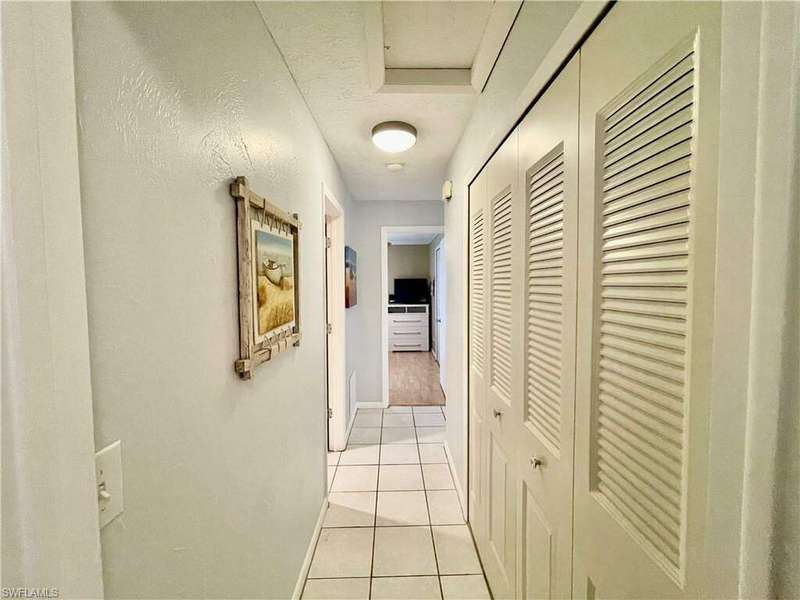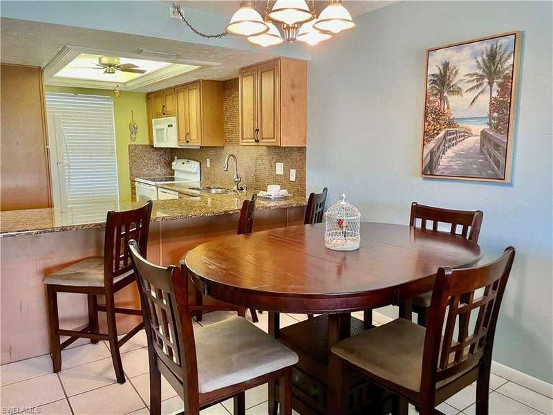 Opportunity knocks! ONLY AVAILABLE 2ND FLOOR CORNER END UNIT and comes with absolutely everything you need. Use it for personal use, or rent it out. Minimum is 30 day rental. This very gently-used condo is just waiting for you! Turnkey furnished with everything you need...including beach toys! You will find peace of mind knowing the metal roof is new, a/c is new, new water heater and the other appliances are newer and in tip top shape. Nice sized-lanai just off the gathering area or primary bedroom. Enjoy your morning or evening beverage, play some cards with friends or just enjoy a nice meal on your screened-in lanai. You can move right in to this split bedroom with 2 bedrooms and 2 bathrooms, with washer and dryer in unit. Gorgeous kitchen with glass tile backsplash, granite counters and lots of storage throughout. Bamboo and tile flooring throughout. Storage unit available for owner or tenant use close to the carport assigned parking space. Easy access to restaurants, nearby Fort Myers Beach and the beaches of the islands! Tennis and pickleball courts, swimming pool, shuffleboard and covered outdoor gathering are located near the pool. What else do you need? So close to the nearby beaches and restaurants, but without the cost! Call today for a private showing....You will be so happy you did!