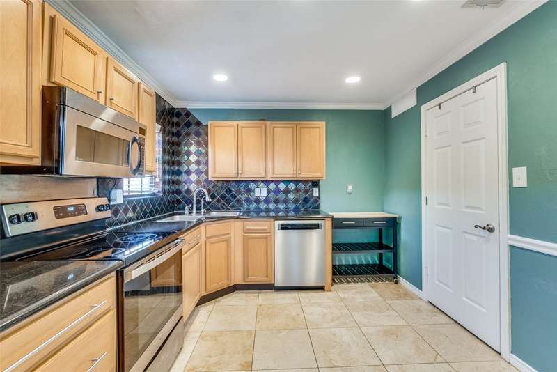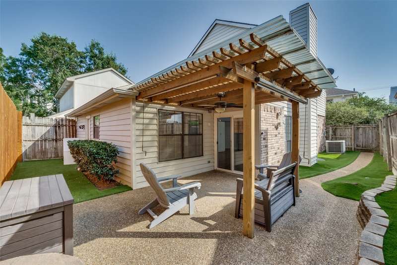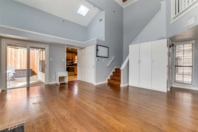 For Lease! Welcome to this stunning 2-bedroom, 2-bath home in the sought-after Bryan Place neighborhood nestled on a quiet cul-de-sac featuring dual primary suites, each with its own en-suite bath for ultimate comfort. The eat-in kitchen is equipped with sleek stainless steel appliances (included), ideal for cooking and entertaining and a separate laundry room complete with washer and dryer. Hardwood flooring throughout adds a touch of elegance, while the vaulted ceilings create a spacious, airy feel. Step outside to enjoy the beautiful views of the Dallas skyline. The backyard is equipped with turf, making it a great space for entertaining providing a low-maintenance outdoor area to relax and play, for all size dogs and pets as well. Don't miss the oversized- one car garage and plenty of extra on-site parking. Conveniently located just steps from Exall Park, which offers a rec center, walking trails, ball fields, and a playground. Additionally, you're close to Baylor University Medical Center and the Dallas Arts District, with easy access to dining, shopping, and cultural experiences.
