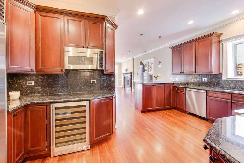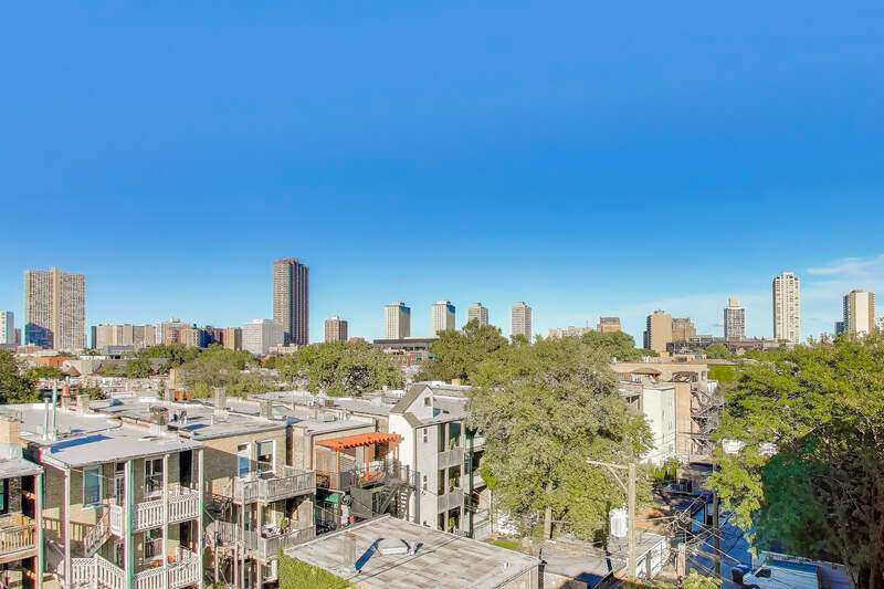 Beautiful Penthouse Condo with Private Rooftop Deck! Move-in-ready top floor condo featuring an oversized chef's kitchen with plentiful cabinets and counter space plus a breakfast bar, wine fridge and high-end appliances including Sub-Zero refrigerator, Viking Range and Hood, and Bosch dishwasher. Perfect for entertaining, the home includes two wet bars - one that opens out to a private rooftop deck with incredible 360-degree views of the city. The spacious primary suite accommodates a king-size bed, has a large private balcony and walk-in closet. The en-suite primary bathroom includes a steam shower, soaking tub, heated floors and expansive dual vanity. The condo has been freshly painted and has newly refinished hardwood floors throughout. One attached garage parking space is included in the price. Other highlights include a south-facing Juliet balcony in the living room, crown moldings, gas fireplace, surround sound and storage.