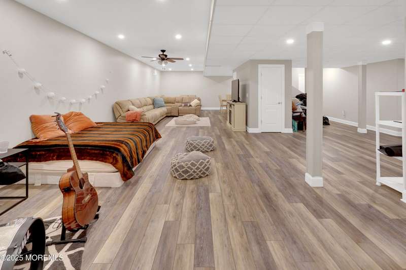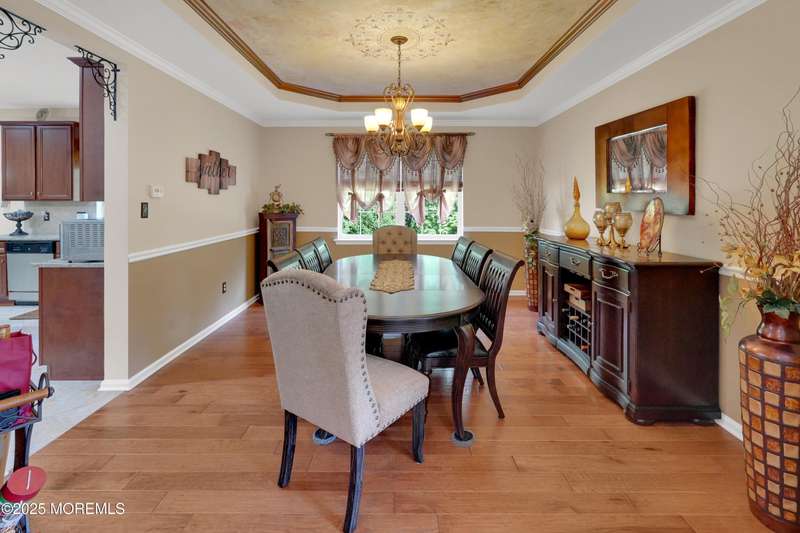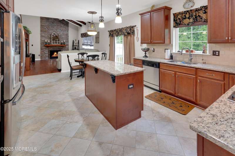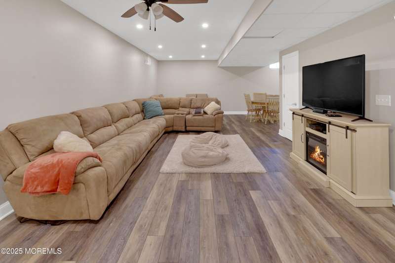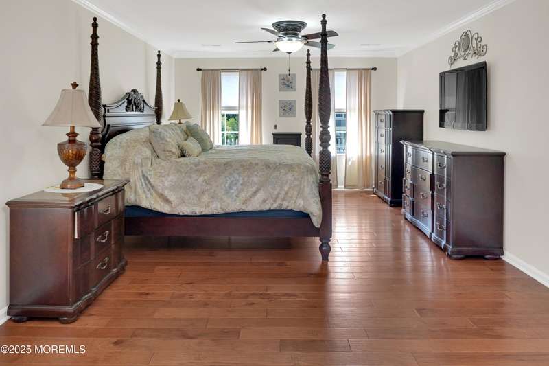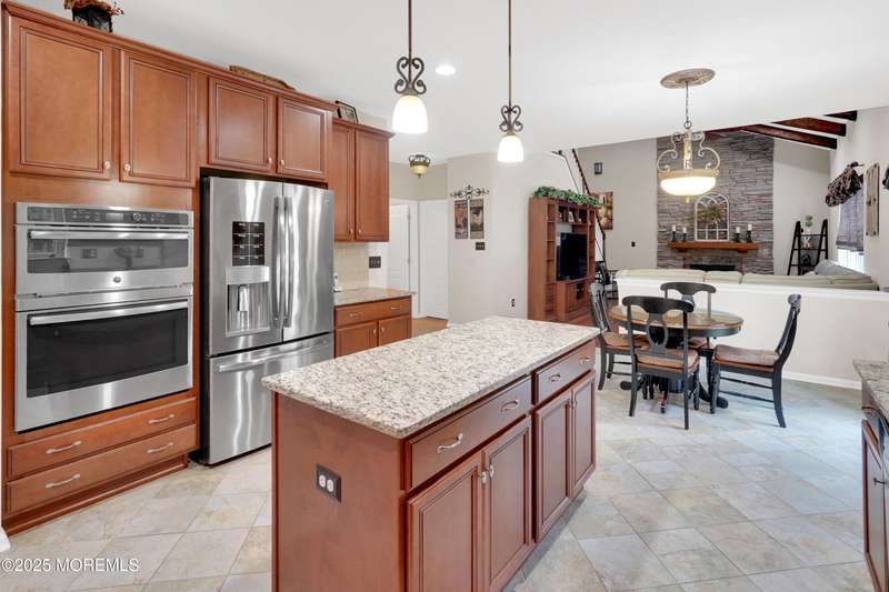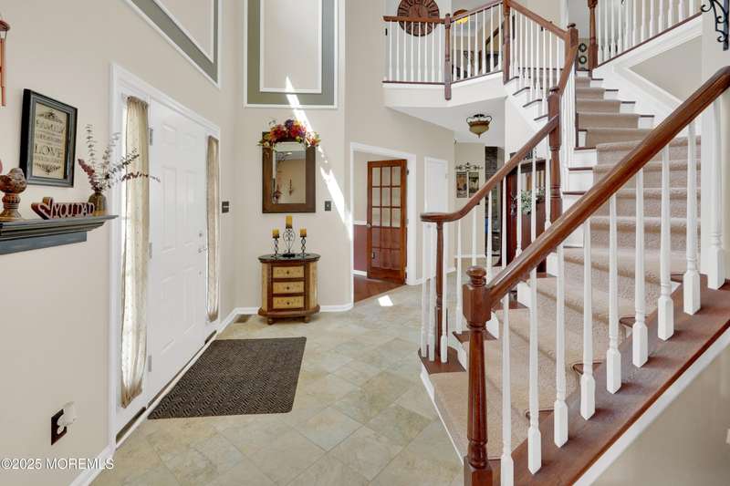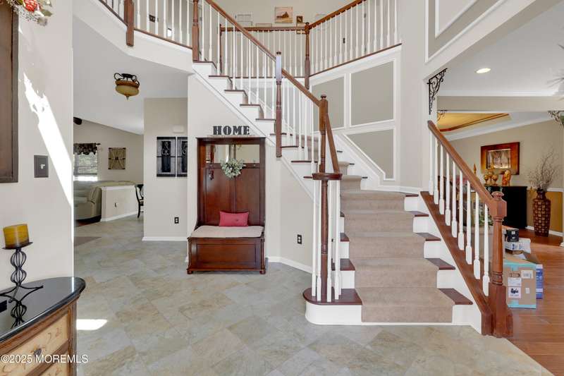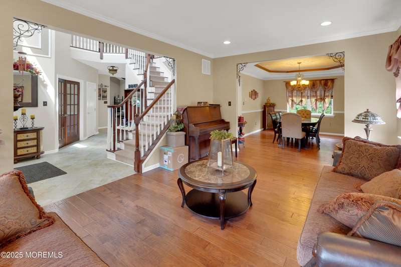This beautiful Fairfield Model is nestled on a quiet cul-de-sac in one of Howell's most sought-after neighborhoods. Step into the grand 2-story foyer that flows into the living room, dining room, office/library, powder room & a gourmet kitchen with granite counters & a sunny breakfast area. Hardwood floors throughout. The spacious family room features a stunning stone gas fireplace, w/crown molding adding an elegant touch. Upstairs, the luxurious primary suite offers a spa-like bath, complemented by 3 additional bedrooms and 1 full bath. The finished basement includes even more living space & 1 full bath. Enjoy the private backyard retreat-perfect for entertaining, with room for a pool-plus a 2 car garage.