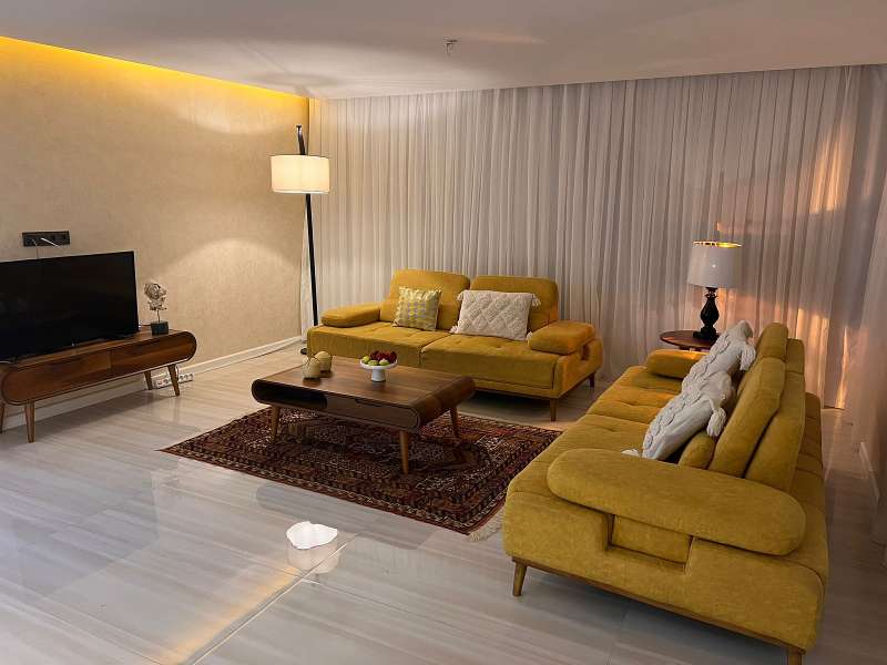 The apartment is a 2-bedroom and is offered for sale furnished with air conditioners, white goods set, beds and wardrobes in the rooms, living room seating set.