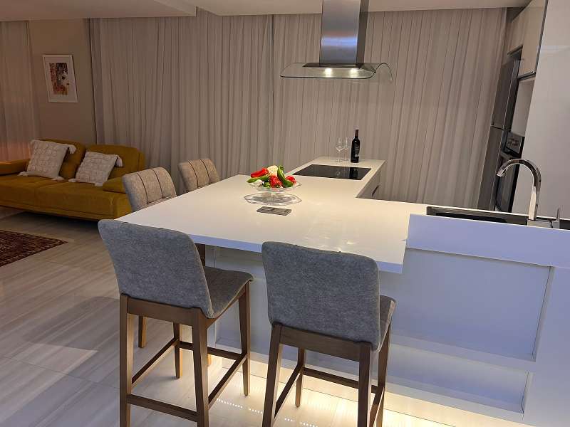 The apartment is in a luxury residential project on a plot of 8.152 sqm. There are a total of 96 apartments in 7 blocks. Designed in a 5-star hotel concept, the project has a landscaped garden, site attendant, sauna, cafeteria, gym, elevator, bowling, Turkish bath, barbecue area, hairdresser, generator, 5 swimming pools, children's pool, playground, tennis and basketball courts, massage room, steam room, indoor swimming pool, 3 outdoor parking areas, indoor parking, cinema hall, pool bar, reception, squash hall, 24/7 security camera system, and security.