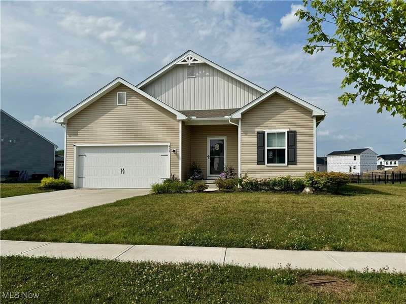 Welcome home to this NEWLY BUILT RANCH style home that blends comfort, style, and functionality for easy modern living. This home was completed in 6/2024 and this popular model can not be newly constructed for this price. No need to wait for construction and it's hassles. Plus, there is a TRANSFERRABLE Warranty included for that extra comforting peace of mind. The home has a wonderful welcoming front porch area. Step inside and experience the expansive great room filled with natural light featuring cathedral ceilings for an airy feel. The cozy fireplace creates a welcoming gathering spot for entertaining and relaxing. The open floor plan seamlessly connects the living, dining, and kitchen areas making it ideal for both daily living and hosting guests. Gourmet kitchen is beautifully equipped for every chef and includes a spacious center island for casual meals or conversation. Sleek recessed lighting and an oversized pantry make storage and organization effortless, all while adding a touch of sophistication to your home's heart. The flexible 4-bedroom layout easily accommodates families, guests, or a home office. Both full bathrooms are designed for comfort and practicality, featuring quality finishes and generous storage. Additional oversized closets throughout the home provide convenient organization and keep every space neat. Step outside to enjoy a charming front porch, perfect for morning coffee, and a back deck ideal for summer cookouts or relaxing at the end of the day. The spacious 2 car attached garage adds convenience and offers plenty of room for vehicles and storage. The full basement is ready for your finishing touches. This wonderful location further complements the home. Situated in a friendly neighborhood, close to parks, schools, dining, shopping provides the perfect balance of quiet living and community connection. Schedule your private tour today!