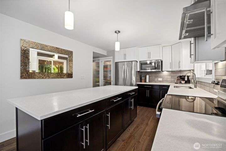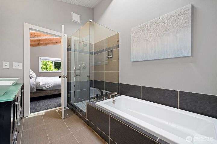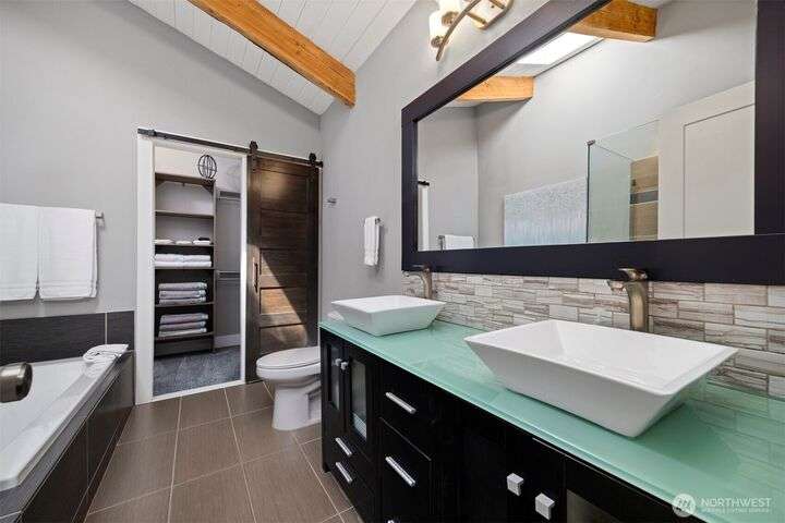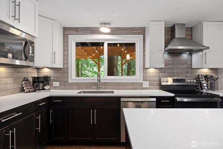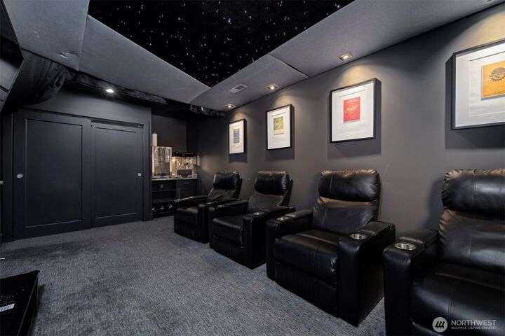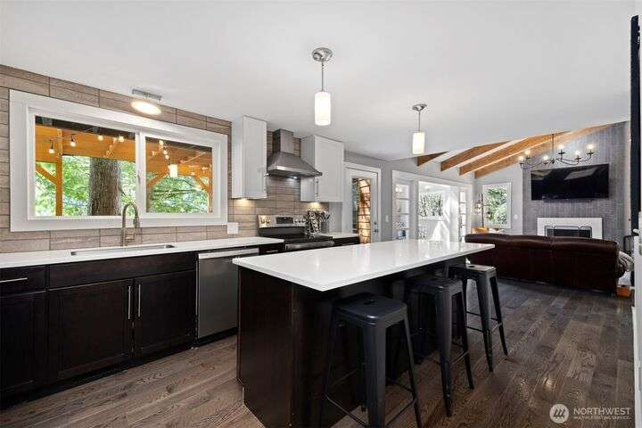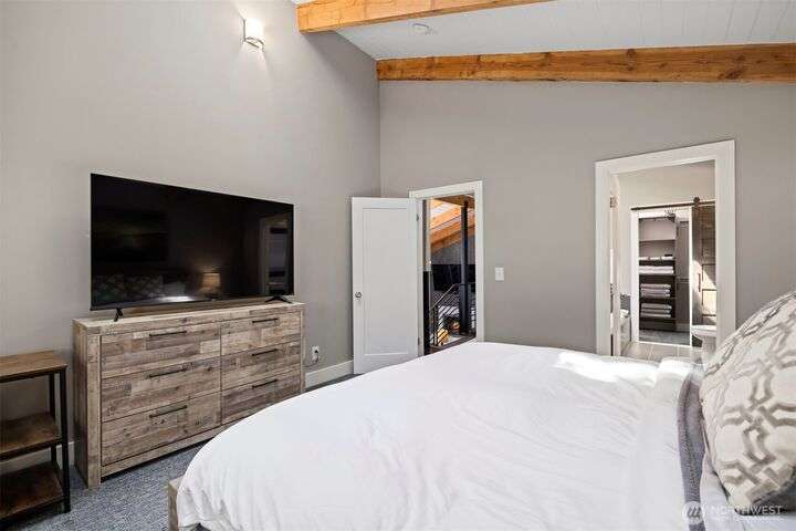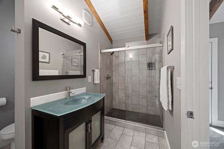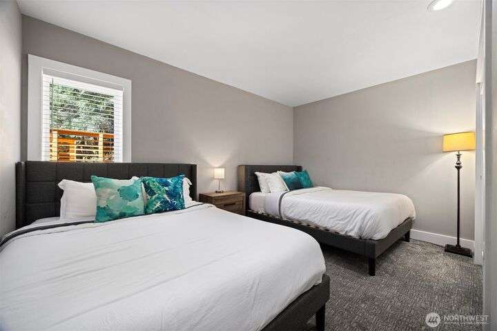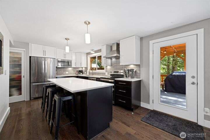 Fully remodeled & stunning, this custom home sits on a private, park-like double lot w/mature trees & privacy. Distinctive architecture fts soaring ceilings, exposed beams, new windows & quality craftsmanship. Kitchen fts quartz counters, SS appliances & sunroom that opens to main living area w/fireplace. Luxe primary suite inclds walk-in closet, double vanity & custom tilework. Second primary upstairs adds flexibility. Downstairs fts bonus BR & full movie theater/4th BR. Extensive outdoor decking, built-in seating & hot tub make entertaining easy. Generous parking & oversized 2-car garage. Proven short-term rental, offered partially furnished as income-generating opportunity or private escape. Access to golf, marina, beaches, trails + more