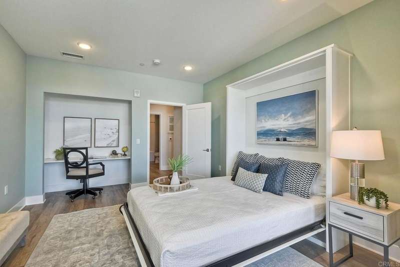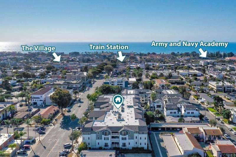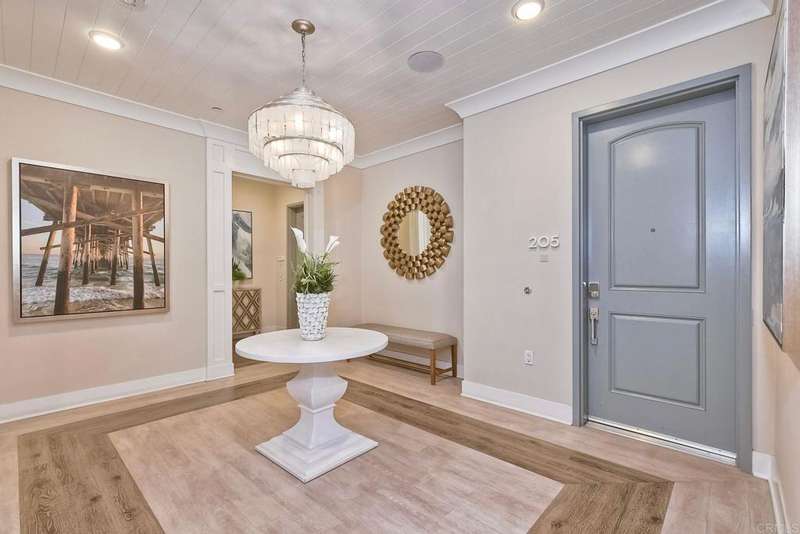 REFRESHED PRICE - Beautifully upgraded SINGLE-LEVEL condo at The Carlyle in the heart of Carlsbad Village - walking distance to shops, restaurants, and the BEACH. This home features an open floorplan, chef's kitchen with quartz countertops, Sub-Zero fridge, Bertazzoni 6-burner range, double ovens, and wine fridge. The great room opens to an oversized covered balcony with pool views. The primary suite includes French doors to the balcony, a walk-in closet, and spa-style bath with dual sinks and walk-in shower. The second bedroom offers a Murphy bed, built-in desk, and its own French doors to the balcony. Includes a full laundry room, tankless water heater, and built-in BBQ. Gated garage with DIRECT ELEVATOR ACCESS, secure entry, and wide, elegant hallways. Ideal for full-time living or a luxury second home in one of Carlsbad's most desirable locations!