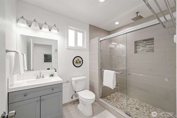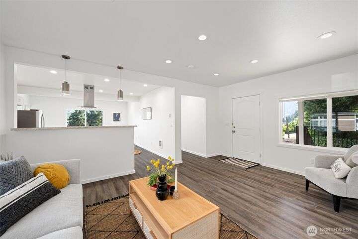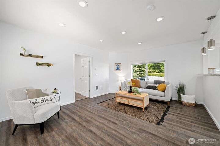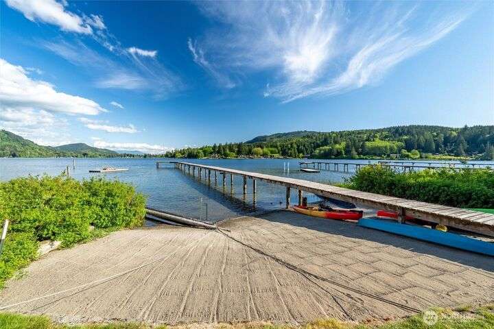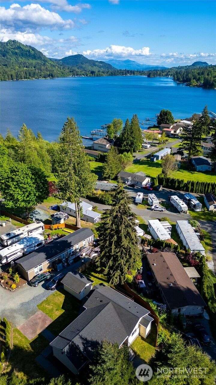 Imagine waking up to serene lake and mountain views in this single-level home in a welcoming 55+ community with its private beach and dock on Lake Samish – all for under $500K. This home has been thoughtfully updated with new LVT flooring, fresh sheetrock, LED can lights, vinyl windows, stainless steel appliances, and upgraded CAT 5/6 wiring and plumbing. Enjoy the large, tiled front porch as you sip your morning coffee while watching the sun rise, or entertain on the new Trex deck with lake and mountain views. There is a shop with electrical outlets, offering the perfect space for hobbies. The home is privately situated in the park, and the monthly dues of $1,100 include basic cable, utilities, and more. Lakefront living on a budget!
