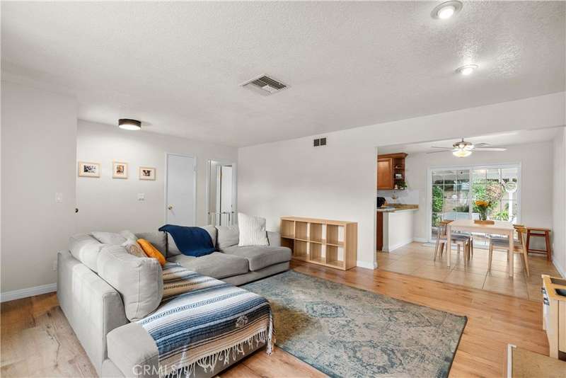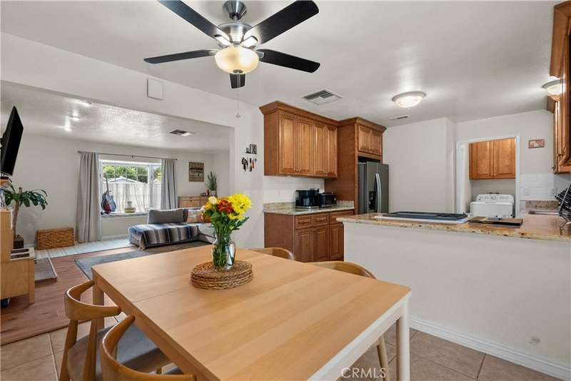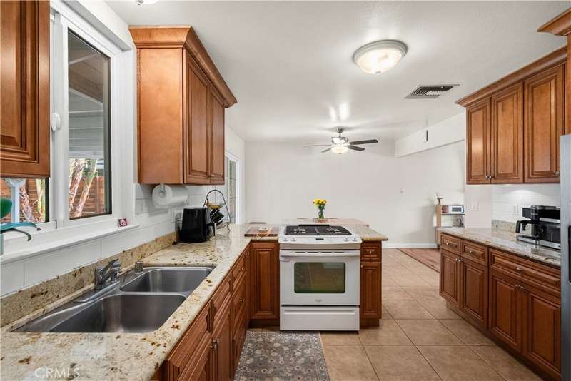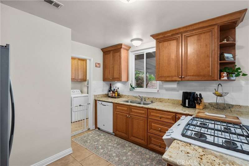 Nestled in a sought-after West Hills enclave, this charming residence offers the perfect blend of vintage character and modern convenience. Located on a quiet street and surrounded by a welcoming community of well-kept homes, this property provides an ideal setting for comfortable family living. From the moment you arrive, the home’s inviting curb appeal and inviting front porch set a warm and welcoming tone. Inside, 1,409 square feet of bright, open living space includes four bedrooms and two bathrooms, offering ample room for relaxation, entertaining, and everyday comfort. At the heart of the home is the upgraded cook’s kitchen, featuring rich cabinetry with generous storage, granite countertops, and breakfast bar seating. The kitchen is equipped with quality appliances including a gas oven and range, dishwasher, and refrigerator. Just off the kitchen, a dedicated laundry room adds extra storage and convenient access to the backyard. The separate dining area is perfect for both casual meals and special gatherings, with sliding glass doors that lead to the patio and seamlessly connect indoor and outdoor California living. The spacious living room is equally inviting, filled with natural light from large windows, recessed lighting, and a cozy fireplace—making it a perfect space to relax or host guests. The primary bedroom suite offers generous closet space and an en-suite bathroom featuring a tiled stall shower, storage, and sink. Three additional bedrooms are light-filled and include ample closet space, sharing an updated full bathroom complete with a tiled shower-over-tub and a spacious vanity. Step outside into your own backyard oasis. The beautiful yard features mature landscaping, a large grassy area, and a covered patio—ideal for dining, entertaining, or quiet relaxation. With an east-facing orientation, the yard enjoys warm morning sunlight and cooling afternoon shade, creating a comfortable environment throughout the day. A two-car garage offers abundant built-in storage, a roll-up garage door, and an automatic door opener. Upgrades include a composition roof, dual-pane windows, energy-efficient central air and heating—all enhancing the comfort and efficiency of this classic mid-century residence. Conveniently located to top rated shopping, restaurants, entertainment, schools and transportation, this move-in ready home is the perfect place to make lasting memories with family and friends.