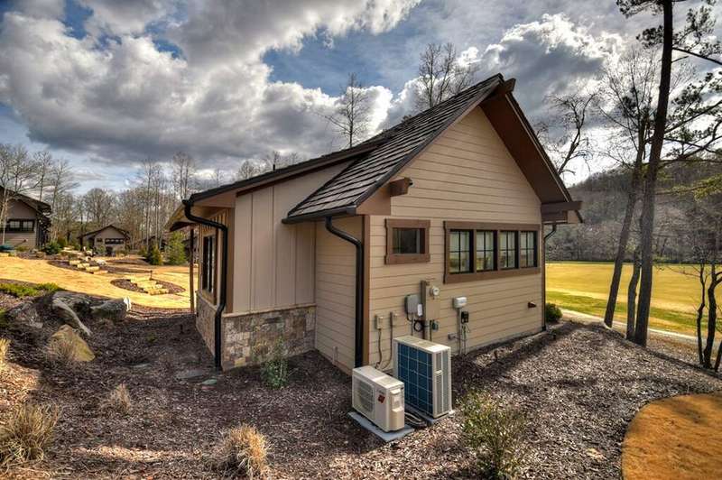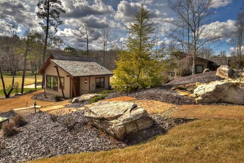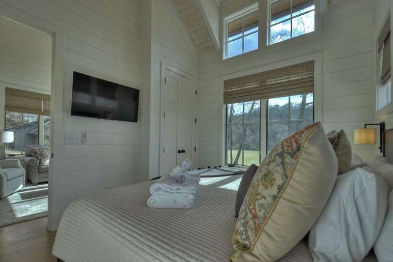 Nestled within the captivating landscape of the Hillside Cottages of Old Toccoa Farm, Cottage 10 boasts a prime location with breathtaking views of Hole 7's fairway and the serene Toccoa River. Among the collection of 15 charming one-bedroom cottages, this abode offers an exclusive opportunity to experience the prestigious Old Toccoa Farm lifestyle, distinguished as the sole 24-7 guard-gated residential 18-hole golf course in Blue Ridge. Inside Cottage 10, guests are greeted by a warm and inviting living space, complete with generous seating arrangements ideal for relaxation. The cottage features a well-equipped kitchen with bar seating, a cozy private bedroom, and a modern bathroom. Step outside onto the stone patio with a firepit, where one can revel in panoramic views of the golf course and river. Adorned with a cedar shake roof, board-and-batten construction, lush landscaping, and elegant stone accents, Cottage 10 epitomizes rustic charm and luxury living. Accessible via a private cart path, guests can easily venture to The Tavern @ Old Toccoa Farm for dining and entertainment. Professionally managed and offered fully furnished, Cottage 10 presents an unparalleled opportunity for an unforgettable retreat in the heart of nature's splendor.