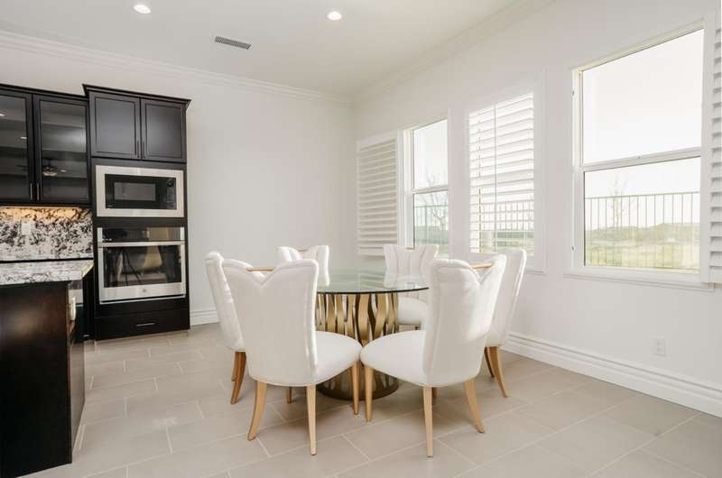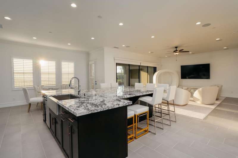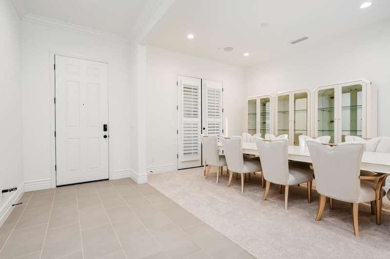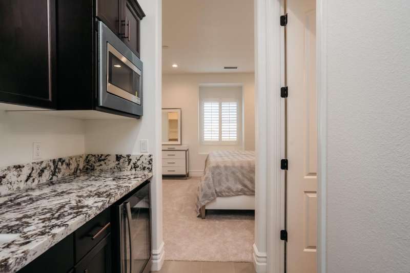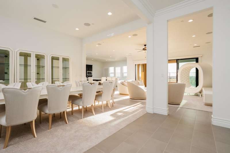 Head into a world of breathtaking views and exceptional luxury in this never-lived-in home located in the prestigious Tesoro Viejo community. This McCaffrey Homes Makenna Plan sits on a premium 9,147 sqft lot & features an open floor plan with soaring 10' ceilings & 8' doors, designed to make the most of its stunning surroundings.The living room welcomes you with a wall of stackable sliding glass doors, opening to expansive views beyond the covered patio and iron fence. A formal dining area and additional eating space also capture the scenery, offering the perfect setting for meals with a view, complemented by shutters for privacy. The chef's kitchen boasts a 10x6 foot island/breakfast bar, Thermador appliances, elegant glass cabinetry, & surround sound throughout.A versatile Multi-Gen suite with a kitchenette offers privacy and convenience, while the primary suite serves as a true retreat, complete with a spa-like bath, walk-in shower, soaking tub, double vanity, & a generous walk-in closet - each with peaceful views of pastures. Crown molding, recessed lighting, & surround sound elevate the home's charm.