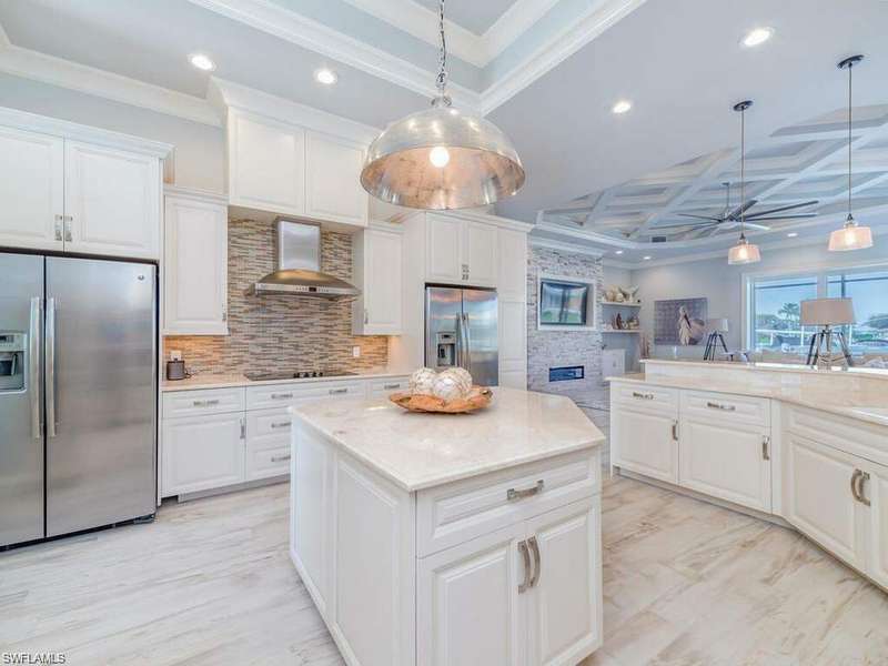 Beautiful custom-built home with over 3,600 square feet living area with gorgeous long water views. Spacious floor plan featuring open kitchen great for hosting guests or a large family, first-floor oversized master bedroom, first-floor guest room suite, and upstairs suite complete with a kitchenette, living area, and two guest bedrooms. Enjoy the 139 feet of waterfront and a brand new dock with two lifts and a spacious area to enjoy the Florida sun. Oversized heated pool with a beautiful outdoor kitchen to enjoy the day outside, perfect for entertaining! The home has an oversized two-car garage and four bikes. Close to all Marco has to offer...beaches, shopping, restaurants. Don't miss this opportunity to enjoy your piece of Marco Island paradise!