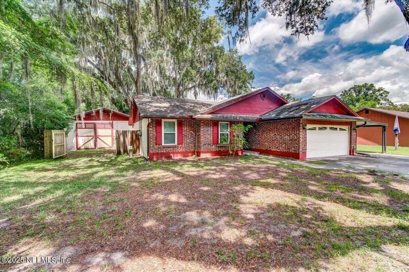 Welcome to this well-maintained brick and block home nestled in the desirable Crystal Springs area of Jacksonville. Situated on a spacious .28-acre lot with no HOA, this property offers both freedom and functionality for homeowners seeking space and versatility. This 3-bedroom, 2-bath residence features an attached 2-car garage, an additional carport, and ample parking - including room for your RV or boat. Inside, enjoy a functional floorplan with comfortable living spaces and a bright enclosed Florida room, perfect for relaxing year-round. The property also boasts a massive 660 sqft detached workshop ideal for hobbies, storage, or even a home-based business. Your pets will love it here, doggie doors throughout. Generator Switch installed in 2024. Septic drain field replaced 2024. Conveniently located near schools, shopping, and major highways, this is a rare find in a no-HOA neighborhood. Home is being sold as-is.