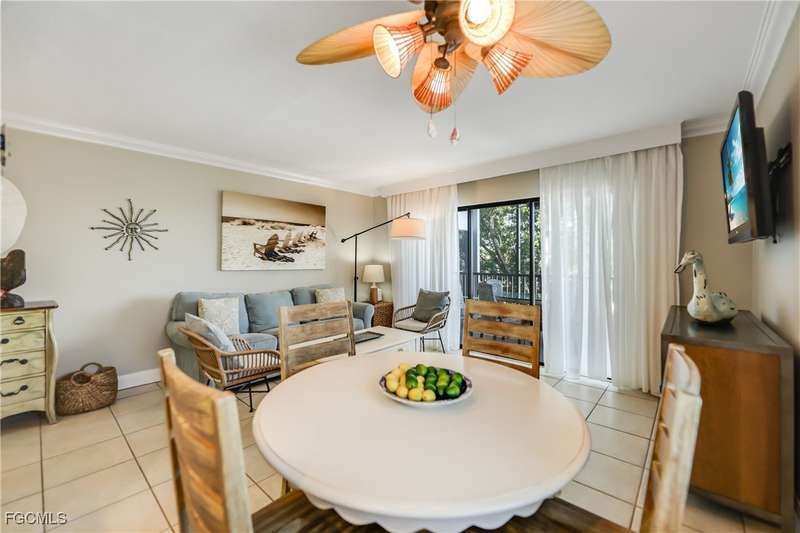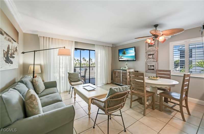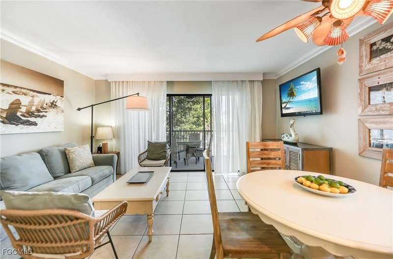 3124 Tennis Villas is a corner unit located on the second floor. Enjoy gorgeous views overlooking the refreshing pooland lush, tropical vegetation. This well designed one bedroom, one bathroom has an open floor plan, spaciousscreened lanai and is being sold turn key. Upgrades include granite countertops and designer cabinetry, crownmolding, plantation shutters or drapes, tile and luxury vinyl flooring throughout, and lovely coastal furnishings.Tennis Villas Association offers an array of amenities including a dedicated pool, comfortable chaise loungers,charming pergola, BBQ & picnic area. A short stroll to the sandy shores of Captiva's world famous beaches and thebest shelling in SW Florida. The Captiva Village with the cute, quaint island restaurants and shops is also a shortwalk. The sellers participate in the South Seas rental program with a strong rental income potential. Welcome toIsland Life!