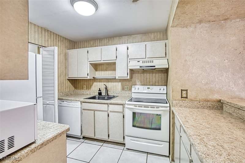 Nicely refreshed first floor condominium. Features new paint and new carpet in the two generous sized bedrooms, both include walk-in closets. Tile throughout the rest of this cozy lake-view home. Inside laundry closet. Lanai has been converted to an air-conditioned den or bonus room area. Enjoy the Florida lifestyle in this affordable home, perfect for a full or part-time residence or as an investment. Great rental history. Located off Island Park Road in South Fort Myers, you'll enjoy easy access to shopping, healthcare, airport and many dining options. A short drive and you're at some of Florida's most spectacular beaches. Don't miss out on this opportunity to own this two bedroom, two bath condominium home.