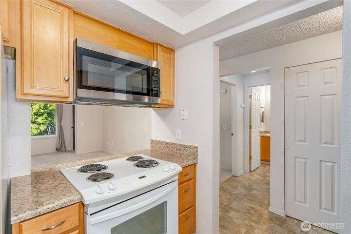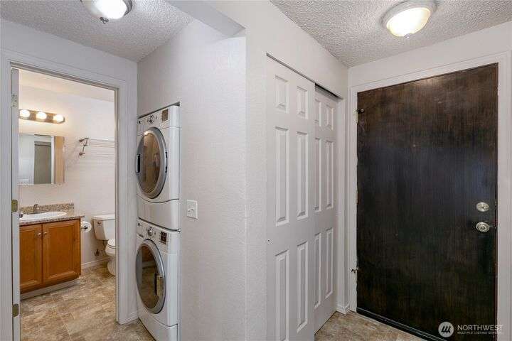 Updated South Everett retreat at Holly Gardens Condominiums. Thoughtful upgrades to this 1 bdrm, 1 bath unit include brand new carpeting, fresh paint, new hot water heater, in unit washer/dryer, newer kitchen cabinets & countertops & new thermal windows. You just won't be disappointed w/ the light & bright interior & its private deck/balcony. Additional benefits include secure building entrance w/ private lobby & stairwell to 2nd floor unit, plus dedicated storage locker for your xtra belongings. HOA fee of $350 covers water, sewer & garbage & NO special assessments offering exceptional value. Complex, with only 28 units, also features a newer roof & NO RENTAL CAP, making it an excellent opportunity for both owner occupants or investors.