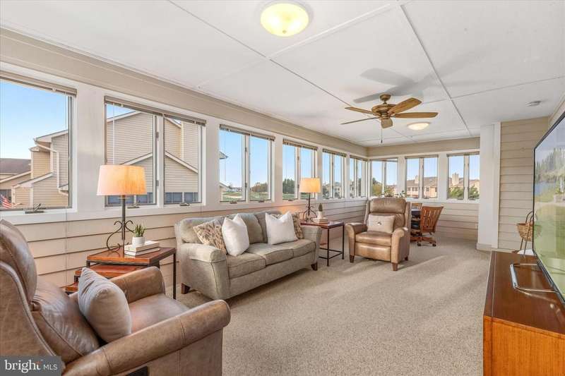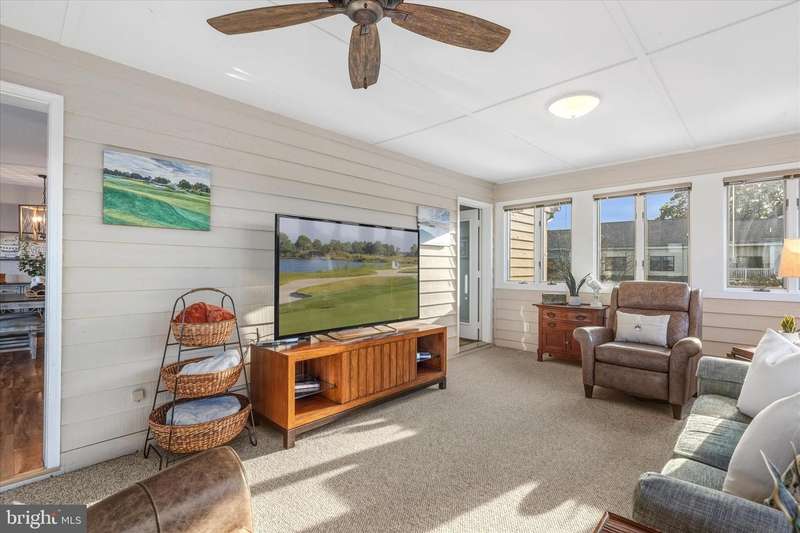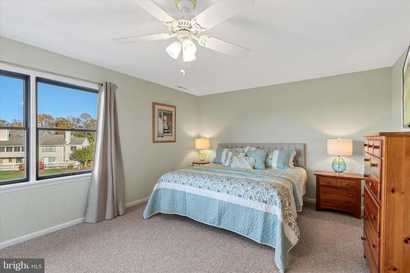 Discover the essence of coastal living at 29586 Carnoustie Court, a light-filled end-unit villa tucked away on a quiet cul-de-sac in the Fairway Villas enclave of the Cripple Creek Golf & Country Club community. Perfectly perched to take full advantage of panoramic views of the Indian River Bay and the 10th Green, this meticulously maintained townhome shines as a serene three-level retreat, blending laid-back seaside style with the comfort and space ideal for both entertaining and everyday living. The reimagined main level opens to a central living space where three floor-to-ceiling picture windows and an atrium door bathe the room in natural light, showcasing sweeping vistas of the golf course and glimmers of the bay beyond. The open plan flows effortlessly from the inviting living area to the dining space with a built-in bar and beverage refrigerator, perfect for hosting. Just beyond, the remodeled gourmet kitchen takes center stage with granite countertops, a suite of stainless-steel appliances including an induction range with double oven, abundant cabinetry, and a deep pantry. The front balcony offers an inviting spot for morning coffee or al-fresco dining. The family room, extending the entire length of the home, is wrapped in picture windows framing the golf course and bay views. This versatile space provides multiple zones for gathering or quiet relaxation. Step out onto the balcony deck off the living room to savor fresh coastal breezes, the tranquil scenery, and even the 4th of July fireworks over the bay. A stylish powder bath and convenient laundry room complete the main living level. Upstairs, the primary suite is a peaceful retreat with a spacious walk-in closet and spa-inspired ensuite featuring dual vanities and a frameless glass walk-in shower. Awaken each morning to magnificent views right from the comfort of your bed. A second bedroom with a private ensuite completes this level, ideal for guests or family. On the entry level, you'll find the home's third and fourth bedrooms, one, the homes second primary suite with a jetted soaking tub, frameless glass shower, and access to a private wrap-around balcony overlooking the golf course. This level also provides access to the garage and the conditioned crawlspace with dehumidifier. Just five miles from Bethany Beach, Cripple Creek Golf & Country Club is Delaware's only private golf course on the Indian River Bay. The 18-hole championship course spans 142 scenic acres and is paired with a newly renovated clubhouse, dining, swimming, pickleball, and lively social events. Outdoor enthusiasts will love nearby Holts Landing State Park with kayaking, paddleboarding, and fishing, while local shops and restaurants keep you connected to beach-town charm. An initial club membership is included in the sale (a $25K value), making it easier than ever to step into the ultimate coastal lifestyle. Don't wait-opportunities like this are rare. Live your best life in this exceptional home and experience all that this special corner of the Delmarva Peninsula has to offer.
