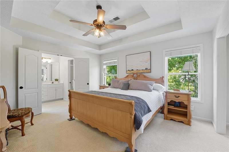 This beautifully designed 5-bedroom, 3.5-bath home with a 3-car garage offers flexible living options for todays lifestyle. With two primary suites one on the main level and one upstairsthis home is ideal for multi-generational living, a private guest retreat, or creating a dedicated wellness, hobby, or work-from-home office space. This well-maintained home has recent updates including professional paint, new lighting, and several newer appliances and mechanicals including a gas range. Set on a quiet cul-de-sac lot, the property features a large, flat, treed backyard with a charming pergola, perfect for outdoor entertaining or relaxation. Abundant natural light from oversized windows frame beautiful views of the privacy-fenced yard. The unfinished basement provides ample storage and includes a concrete-encased safe room/storm shelter for peace of mind. Most bedrooms boast large walk-in closets.From the thoughtful layout to the versatile spaces, this home offers comfort, function, and opportunityall in a desirable neighborhood setting.