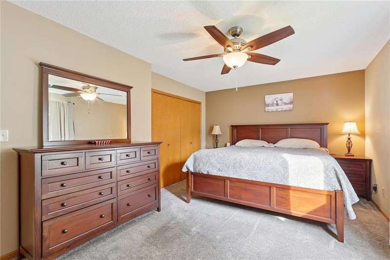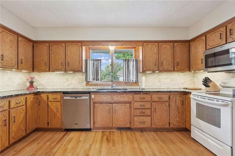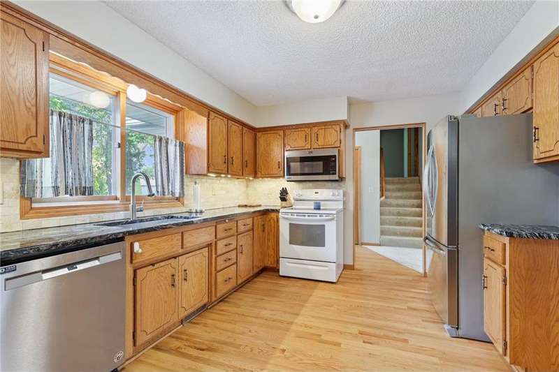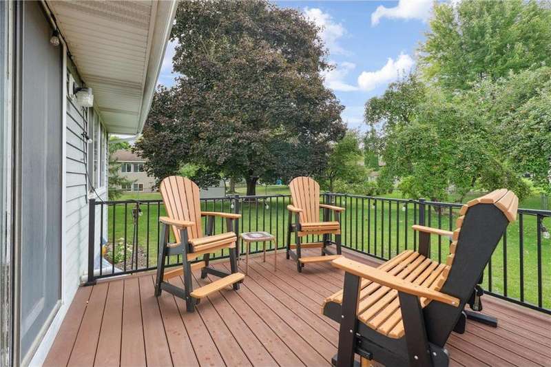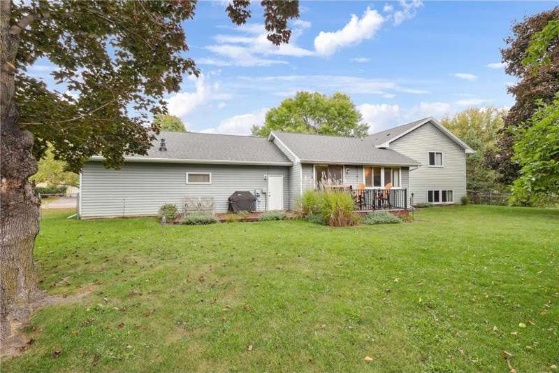 This beautifully maintained 4-bedroom, 2-bath home offers the perfect blend of updates and comfort. The spacious, heated and insulated 3-car garage is extra deep and features brand-new garage doors with the full driveway updated for a fresh, clean look. Inside, the hardwood floors were refinished in 2021, complementing the granite kitchen backsplash (2017) and newer appliances, including the dishwasher, refrigerator, and microwave. The expansive primary suite features a newly carpeted, oversized bedroom and a full bath. All additional bedrooms also have new carpet, adding warmth and style throughout. The lower level offers a cozy new gas fireplace, tons of storage, and updated mechanicals including a newer furnace, air conditioner, water heater, and softener. Drain tile, sump pump, and exterior faucets were redone just two years ago for peace of mind. Outdoor living shines with a fully fenced yard, complete with Honeycrisp and Fireside apple trees. A walking trail winds through the neighborhood, adding to the lifestyle appeal. The backyard is truly a highlight of this property, offering plenty of space for play, gardening, or simply relaxing. The newly built composite deck with its stylish iron railing overlooks the yard, making it the perfect spot for morning coffee, evening gatherings, or weekend barbecues. This home combines thoughtful updates, excellent storage, and modern comforts both inside and out—move-in ready and made to enjoy.
