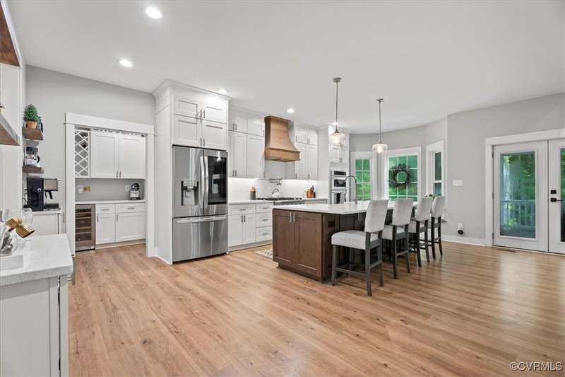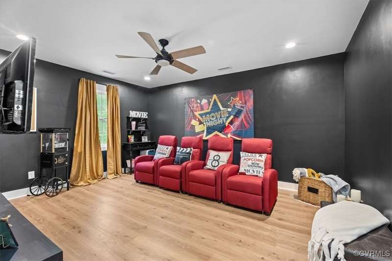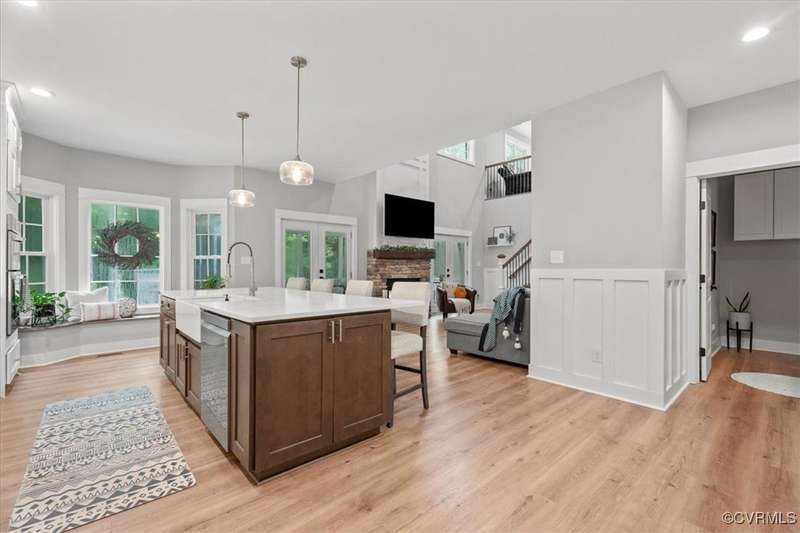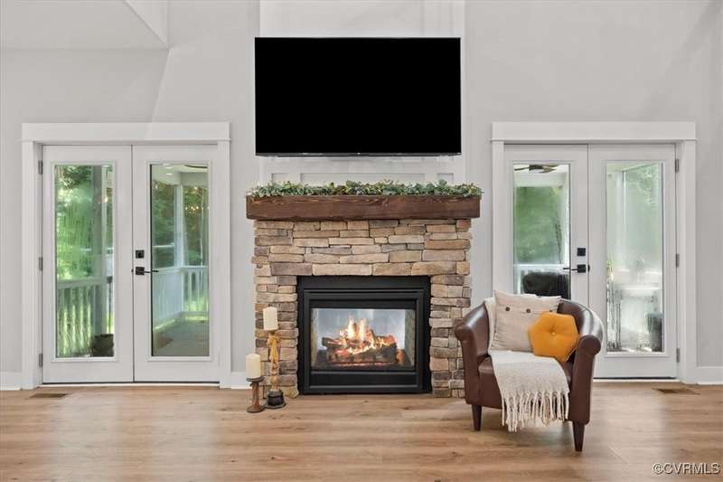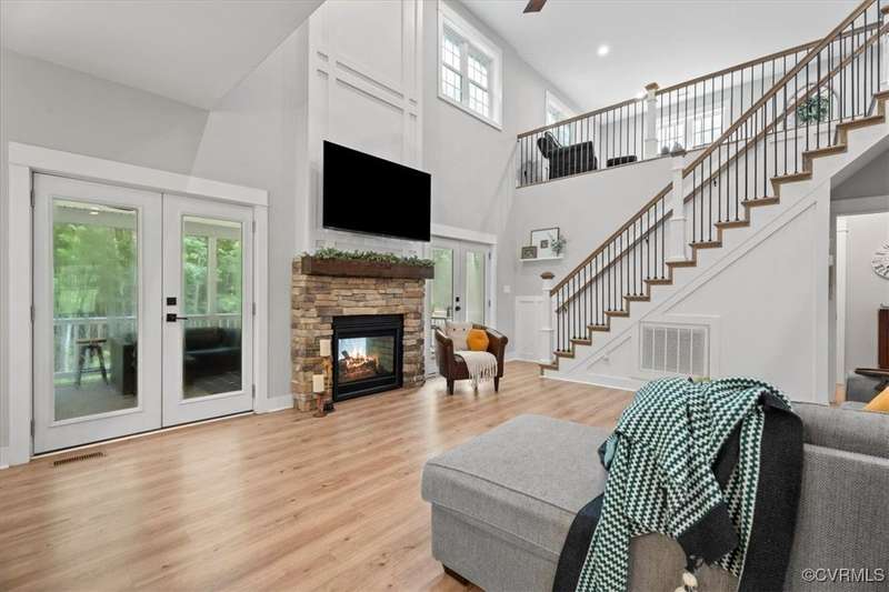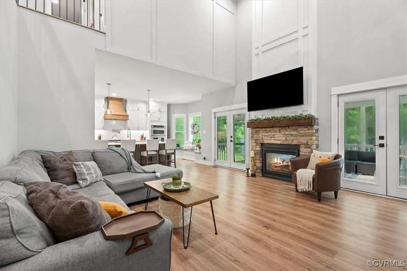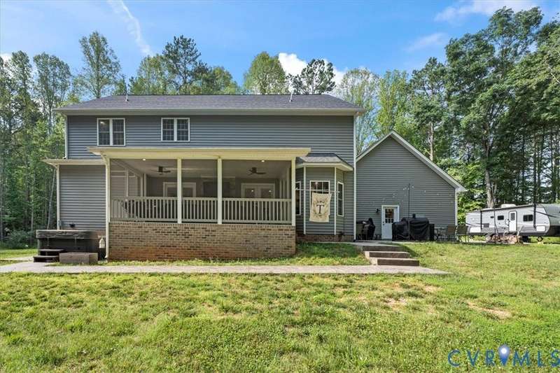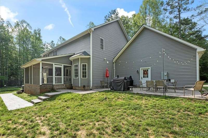 Custom built home with a stunning 2 story dual sided fireplace on 5 acres! As you walk through the double front doors, you'll notice a formal dining room and an office with glass french doors and board and batten accents throughout. This home has a chefs kitchen with a large gas range, quartz counters, microwave/oven combo that doubles as an additional oven, a custom wooden range hood and a 4 person seated island with a farmhouse sink in the center. All cabinetry has soft close doors and don't forget the butlers pantry behind the kitchen with the built in wine fridge. There is a main level primary suite with floor to ceiling tile and a cast iron stand alone tub and in addition to the 3 bedrooms upstairs, you'll find an open loft and a bonus room that has been turned into a theater. Instead of a your typical Jack and Jill bath between two of the bedrooms, this custom designed home added a half bath to each of the two bedrooms with only a shared shower in the center! The back porch is screened with the dual sided fireplace from the living room boasting through and is the perfect spot to relax and watch tv outdoors. All outdoor concrete is stamped around the home and in addition to the screened back porch, there is a large patio for all your outdoor grilling needs as well as a fire pit area. There is electrical already ran for a hot tub, generator and RV if desired. This home offers so much attention to detail and truly is a MUST-SEE!