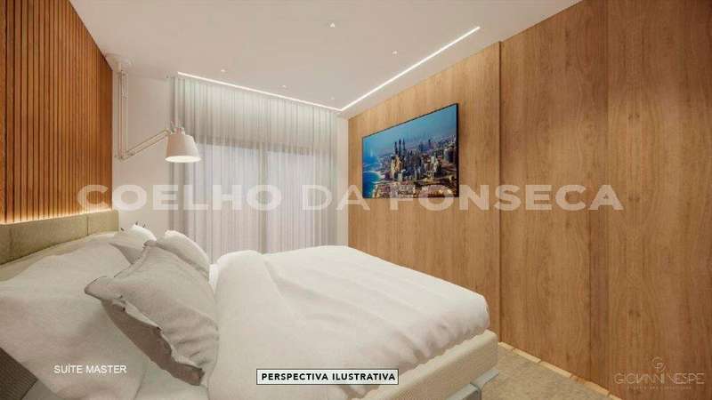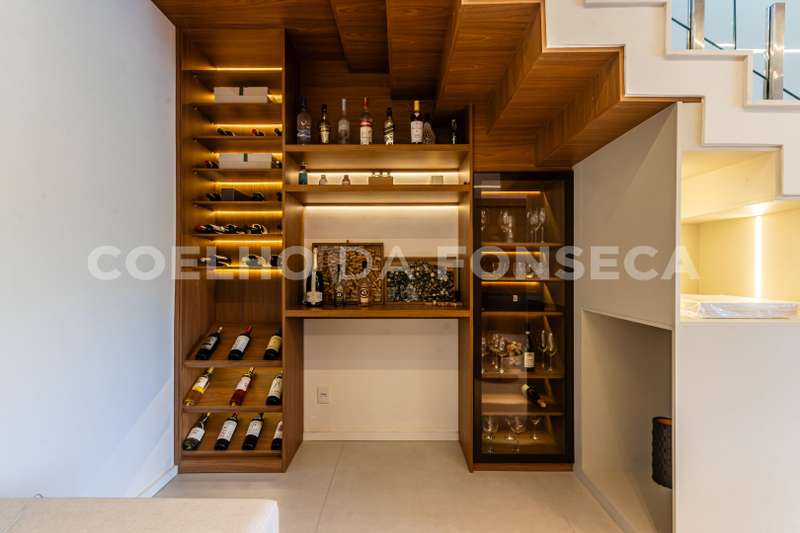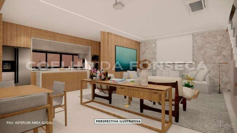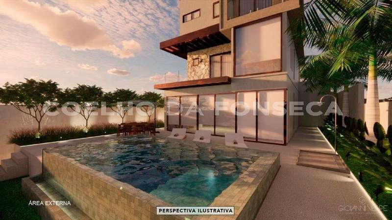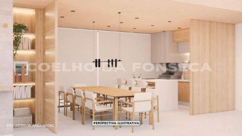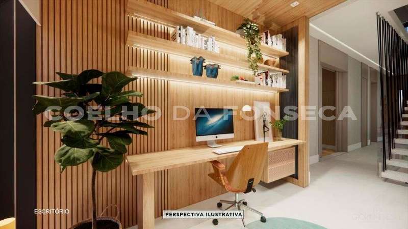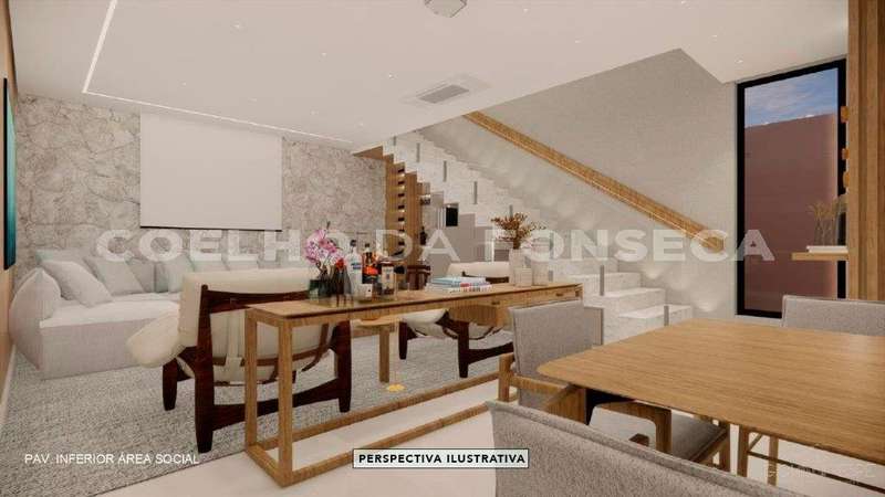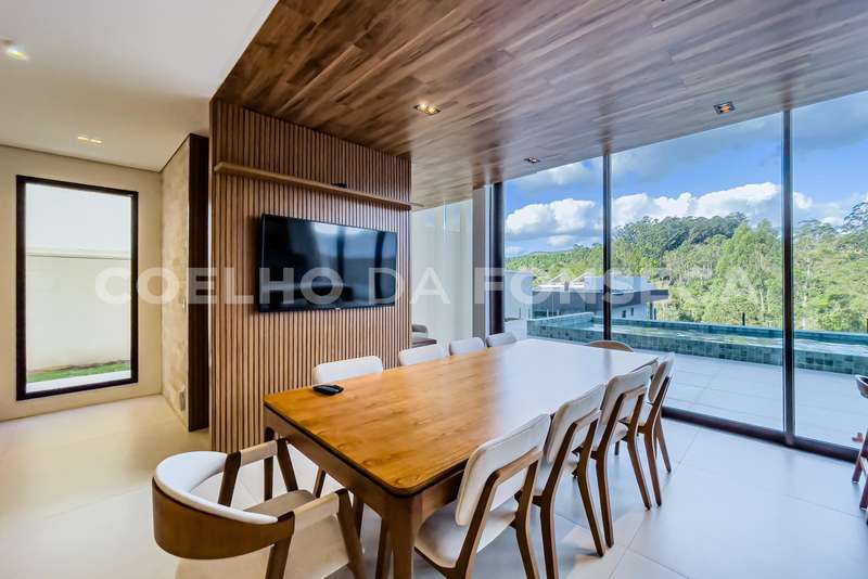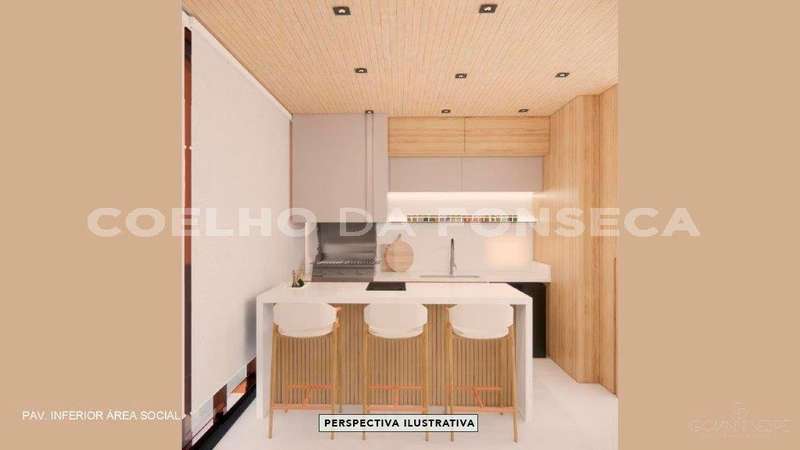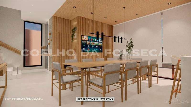 Imóvel de 3 andares, sendo o superior com 2 suítes e 1 suíte master (closet e roupeiro com filtro de água e frigobar). No térreo, 1 suíte, sala de TV, escritório, lavabo, garagem e depósito. No inferior, sala, cozinha, área gourmet (churrasqueira a gás), piscina, lavabo, área de serviço e banheiro completo. Aquecedor híbrido solar/elétrico, energia fotovoltaica estimada 730 kWh/mês, ar condicionado completo, piso porcelanato em todos ambientes (suítes com vinílico), suítes com persiana elétrica. Cozinha com lâmina Sinterizada snow river, lavabos de mármore travertino romano e cuba esculpida; demais banheiros, quartzo branco. Previsão de término: dezembro/23.