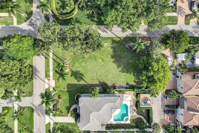 A rare opportunity in the heart of Old Naples. This premium .23-acre corner homesite sits at the sw corner of 1st Avenue South and 5th Street South, just 5 blocks from the beach and a short stroll to the world-class dining and boutique shopping of famed Fifth Avenue South. Located in sought after X500 flood plain, 490 1st Ave S offers long-term peace of mind, superior elevation, and build flexibility. No flood insurance required. Surrounded by mature banyan trees and lush palms, the property provides an inviting tropical landscape with excellent design potential. A private alley allows for rear-entry garage access, enhancing curb appeal while maximizing space for an impressive front facade and expansive outdoor living. Preliminary concept sketches by MHK Architecture illustrate a stunning 4,000+ sq ft custom home featuring 4 bedrooms, 4.5 baths, a private guest suite with elevator access, loft, additional laundry, spectacular pool, and oversized 2-car garage with alley access. Whether you envision timeless coastal architecture, West Indies charm, or a clean modern aesthetic, the design possibilities here are exceptional. Create your own piece of paradise in one of the most coveted walkable beach neighborhoods in Old Naples.