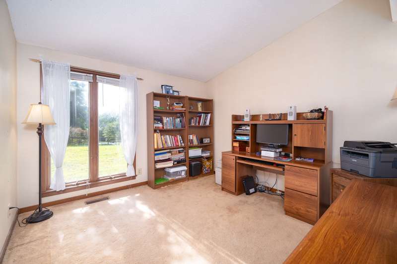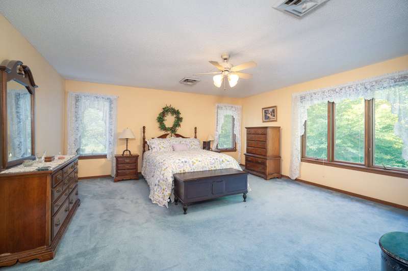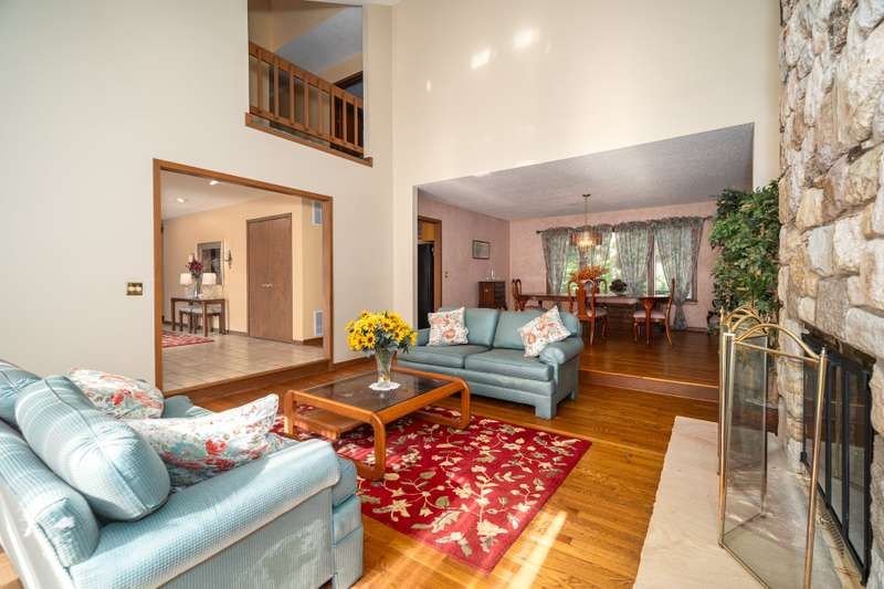 Custom built home on 1.24 acres in Cedar Hollow Lakes! Curb appeal abounds w/a sweeping frontyard bordered by a charming split rail fence & professionally landscaped areas. Enter this flowing contemporary via a tiled entry that leads to a spacious Kitchen w/hardwood floor, custom oak cabs & built-in window seat overlooking a tiered deck & woods for nice privacy. Stone fireplaces in LR & Den + office/flex room on main. Sunroom w/a view! Upstairs is a loft + 4 BRs w/custom closets + floored attic access. At the bottom of the staircase, a windowed, walk out basement provides great storage space or expansion possibilities. A large exterior storage room is located beneath the sunroom, ideal for lawnmower & tool stg. The house also offers an energy efficient, 17 seer HVAC w/7yr parts/labor warranty. Neighborhood amenities incl beautiful Cedar Hollow Lake, ideal for boating & fishing, a private pool & clubhouse, and tennis/pickleball courts. Cedar Hollow is special!