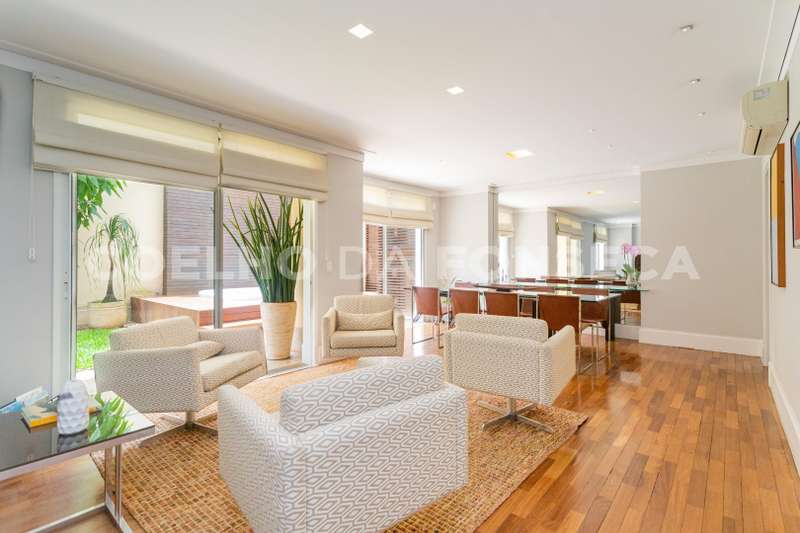 Living com sala de jantar integrada, cozinha gourmet com churrasqueira, 04 suítes com armários claros, suíte master com varanda, hidro e closet, ar condicionado em todos os ambientes, cozinha/área de serviço, dependência de funcionários, depósito, lavabo. O condomínio possui elevador social e de serviço, sala de motorista.
