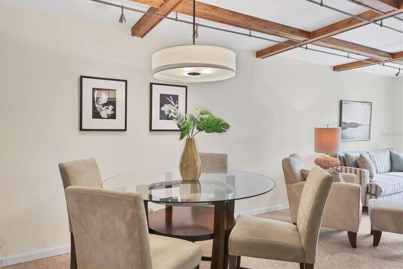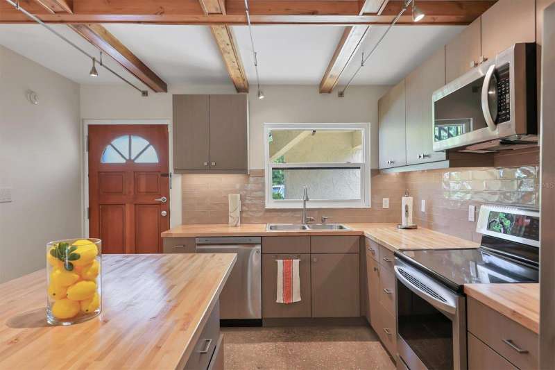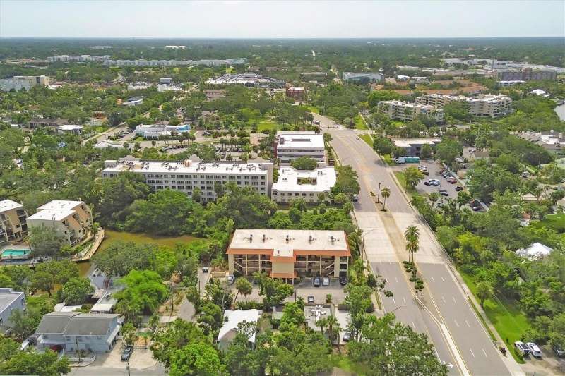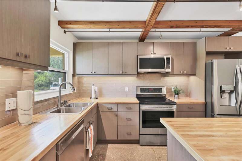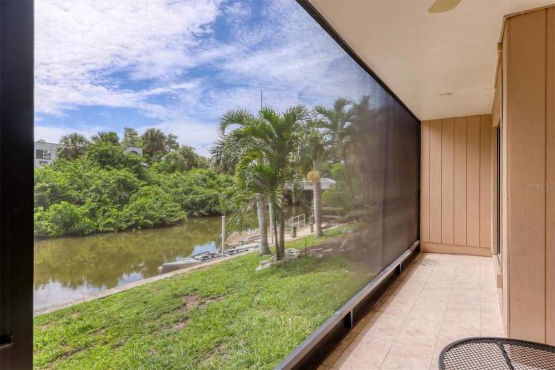 Waterfront and move-in ready, this beautifully updated first-floor condo offers effortless living in one of downtown Sarasota’s hidden gems – Bayou House. Perfectly situated in the heart of the city, yet tucked away on the tranquil Hudson Bayou, this 2-bedroom, 2-bath residence blends modern style with low-maintenance convenience in a prime walkable location. Polished concrete floors, impact windows and sliders, LED ceiling fans and lights, plus an open-concept layout create a clean, modern aesthetic throughout (all updated since 2020). The spacious great room features a wood-beam ceiling detail, sleek track lighting, and large sliders that open to a covered, screened lanai with full-view screen to enjoy calm bayou waters and lush, shaded banks. Fully equipped updated kitchen with soft-close cabinetry, butcher block countertops, subway tile backsplash, LG stainless steel appliances, under-cabinet lighting, and a center island. The primary suite includes direct lanai access, walk-in closet with built-ins, and a stylish ensuite bath with a floor-to-ceiling tiled shower, frameless glass enclosure, and granite countertop vanity. A second bedroom and updated bath provide comfortable space for guests or a home office. Bonus: in-unit Bosch washer and dryer. Bayou House offers assigned parking plus guest parking space, on-site storage, and a private community dock – ideal for launching a paddleboard or kayak right into the Bayou, just strokes from Sarasota Bay. HOA fees include water, trash, sewer, cable, landscaping, and flood insurance for true lock-and-leave ease. Whether you're looking for a full-time residence or a vacation escape, all of downtown Sarasota is at your doorstep. Walk to Selby Gardens, the Bayfront, Marina Jack, Burns Court, galleries, boutique shopping, fine dining, and cozy cafes. Just minutes to Lido Beach, St. Armands Circle and Siesta Key. First-floor, no-step living in the heart of Sarasota, this is Florida waterfront living at its best.