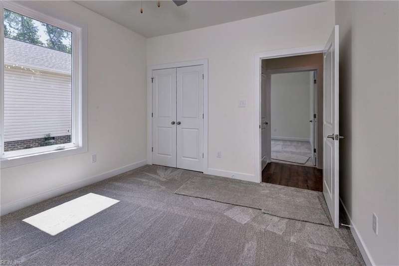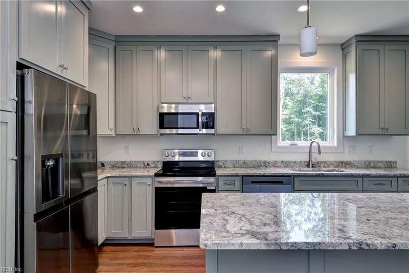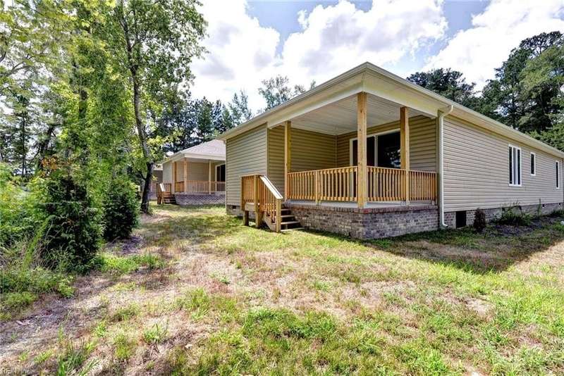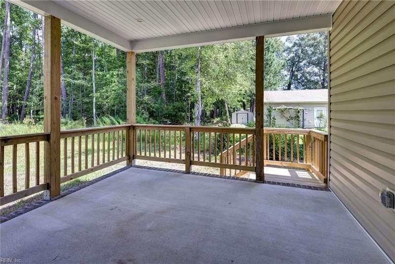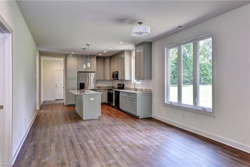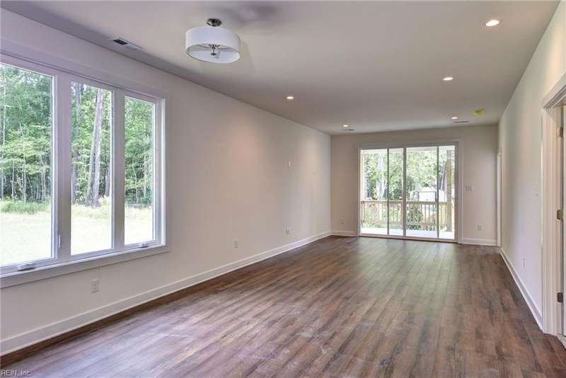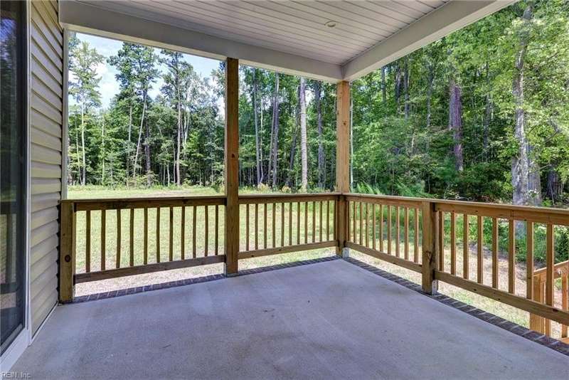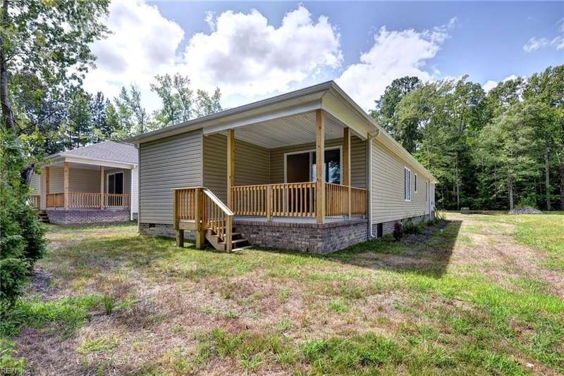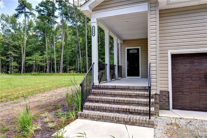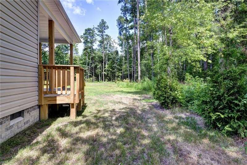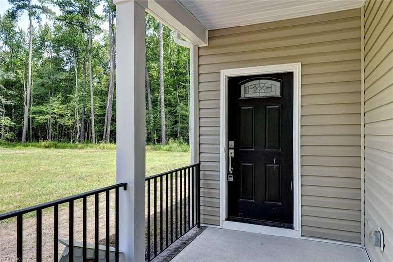 This Custom one-level Home offers a open floor plan that combines contemporary with traditional functionality. This 3-bed, 2-ba utilizes its 1,547 sf of space to maximize livable area. The interior has 9-ft ceilings & wide doorways. The primary BR features a glass-enclosed shower, both bathrooms have beautiful mirrors, ceramic floors, quartz tops & linen closets. The flooring is low-maintenance, Luxury Vinyl Tiles. An large covered front porch is complete with custom made railings. The kitchen is featuring custom made cabinets, an island, quartz countertops, & all SS appliances. Efficiency is enhanced PELLA windows & an 8-foot sliding door to the covered porch.The 3 spacious bedrooms come with ample closet space. For outdoor living, the rear covered porch offers a perfect space to enjoy the outdoors. The 2 car insulated and finished provides space featuring an insulated high-end garage door. Convenient underground electricity, town water, & sewer services. between Williamsburg & RVA