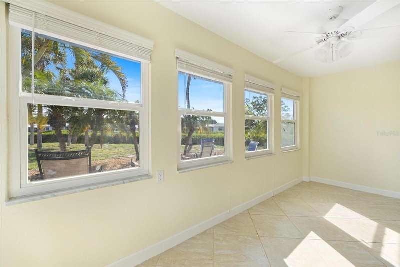 Welcome to this stunning 2-bedroom, 2-bathroom villa located in the highly sought-after Fairwinds Village of Nokomis, just a quarter mile from the pristine sands of Nokomis Beach. Move right in and enjoy the best of maintenance free Florida Gulf Coast living. This freshly painted, stand-alone villa has been completely remodeled, boasting new solid wood cabinets and granite countertops in the kitchen, brand new Frigidaire Gallery appliances, freshly tiled walk in showers and new vanities in both bathrooms. Ensuring modern comfort and efficiency, you can enjoy peace of mind with hurricane impact windows, brand new HVAC system and water heater, as well as a composite metal barrel tile roof that's less than 10 years old. The backyard is ultra private and features breathtaking water views and convenient access to the Gulf through Lyons Bay. Nestled in a maintenance-free and safe, 55+ community, residents can take advantage of the kayak launch and storage, dog park, pickleball courts, gorgeous green spaces, as well as a friendly neighborhood environment. HOA dues cover water/sewer/trash, cable TV, and even flood insurance for added peace of mind! Experience the perfect blend of luxury, convenience, and beachy vibe living in this exceptional villa that is located in the heart of Nokomis with easy access to Sarasota and Venice.