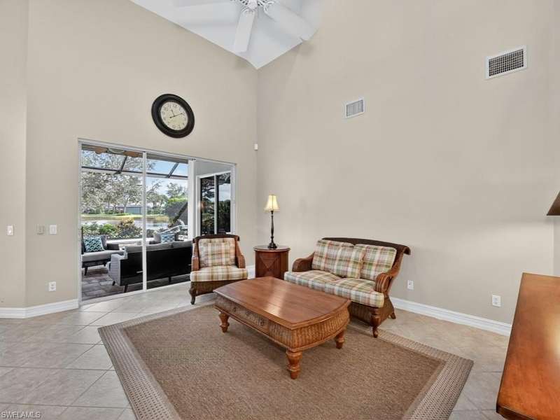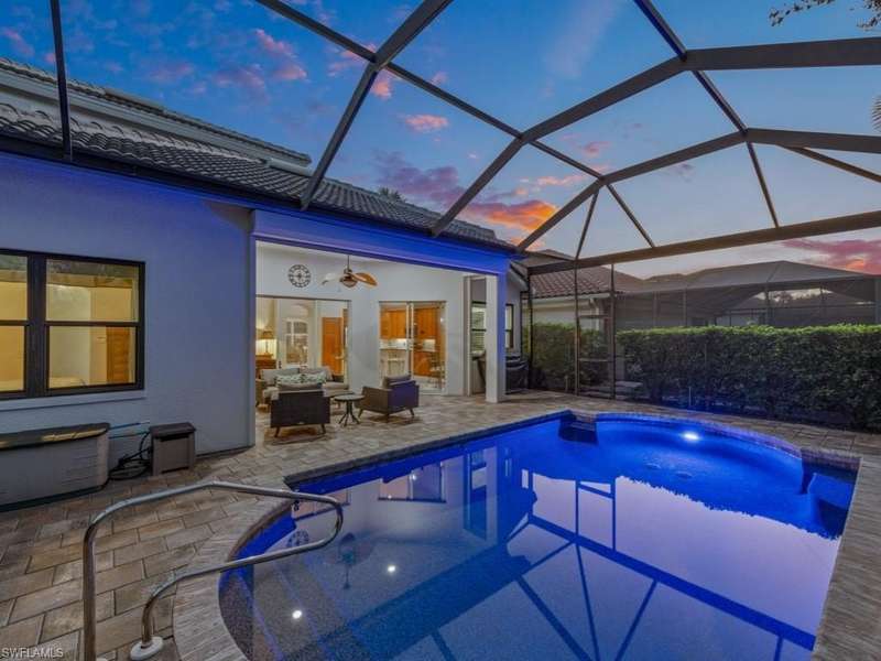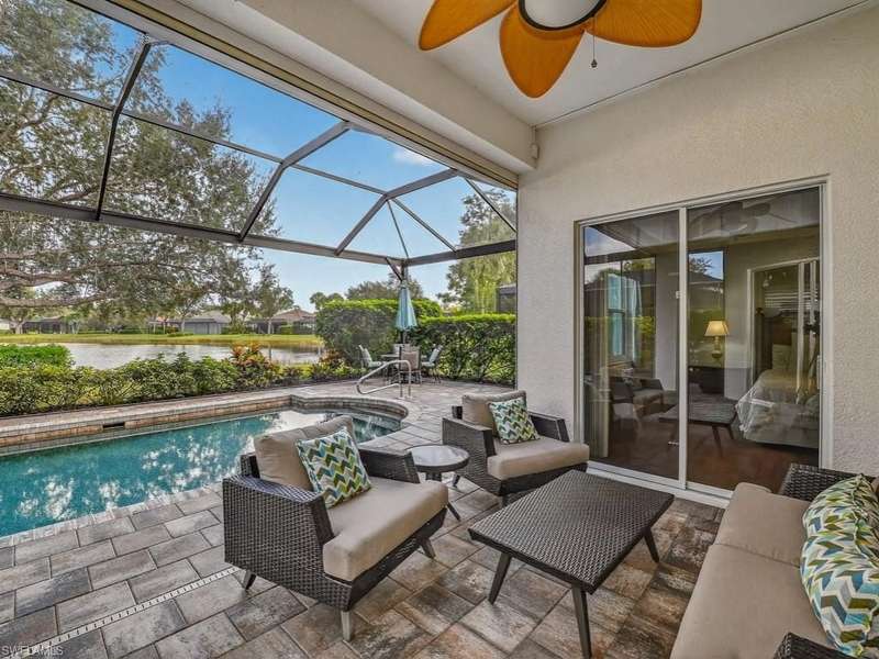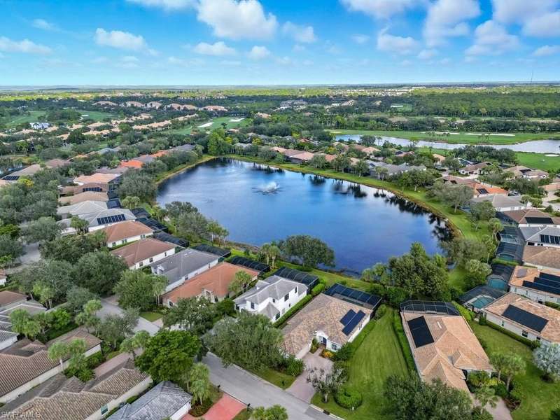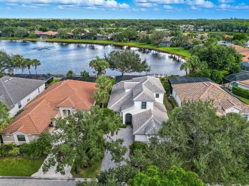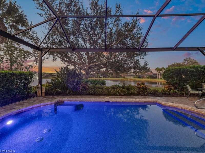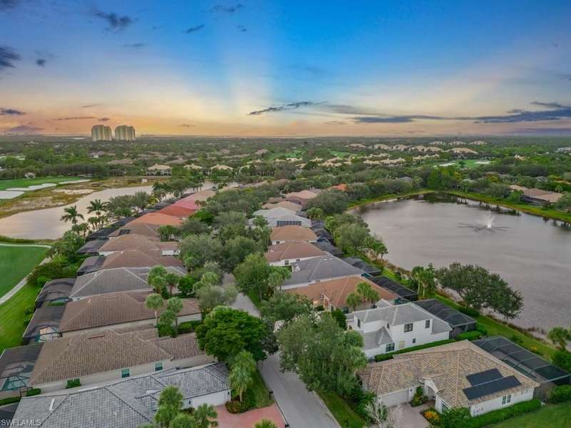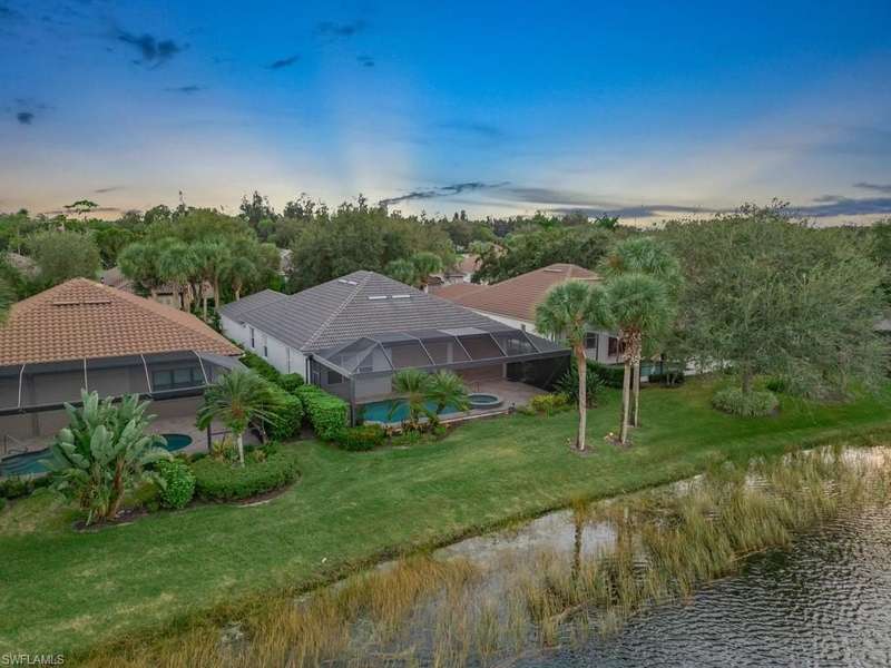Welcome to this exceptional executive home in the Masters at Pelican Sound. Offering nearly 3,000 sq. ft. of living space, this fully furnished two-story residence features 3 bedrooms, 3 full baths, a versatile den, and a bonus loft. The spacious split floor plan includes a great room, plantation shutters throughout, and a chef’s kitchen with stone countertops, stainless steel appliances, an oversized island, and custom cabinetry. The primary suite is located on the ground floor for maximum convenience and privacy. Step outside to enjoy tranquil lakefront views from the screened lanai with picture window pool cage and private pool. Recent improvements include a newer roof (2020), two newer A/C units (2021), and a tankless hot water heater (2024). Additional highlights include full hurricane protection, a transferrable home warranty, and furnishings included for immediate enjoyment. Residents of Pelican Sound Golf & River Club enjoy world-class amenities including a 27,000 sq. ft. clubhouse, 27 holes of championship golf, a premier racquet center, fitness facilities, multiple dining venues, resort-style pools, River Club complex, boat launch and storage, and a complimentary beach shuttle. Ideally located west of U.S. 41, this home is just minutes from fine dining, shopping, I-75, RSW Airport, and Gulf beaches. A rare opportunity to own in one of Southwest Florida’s most desirable communities.