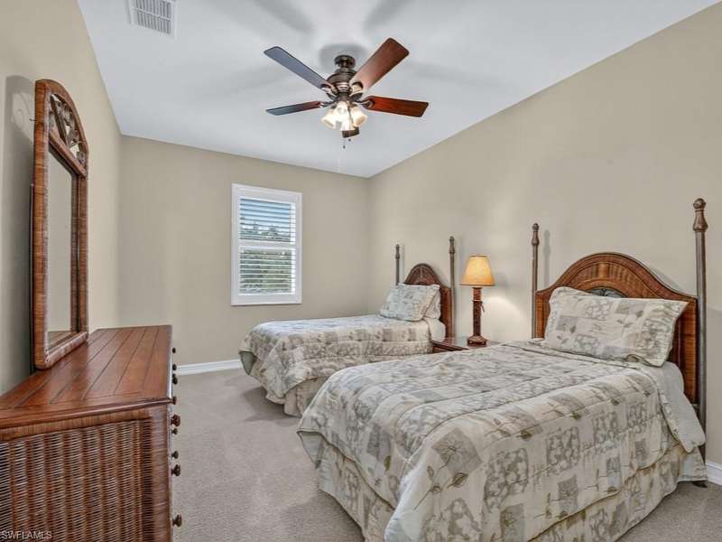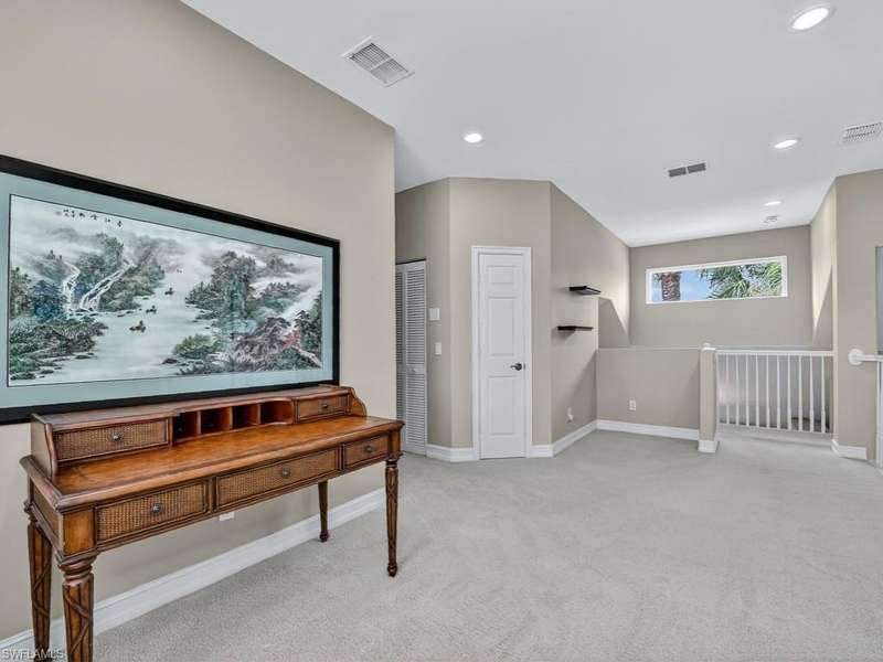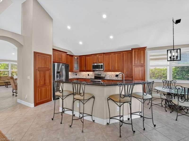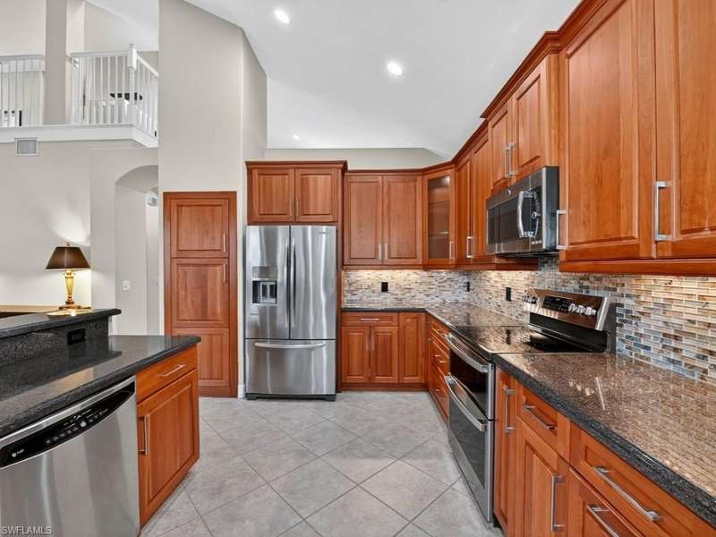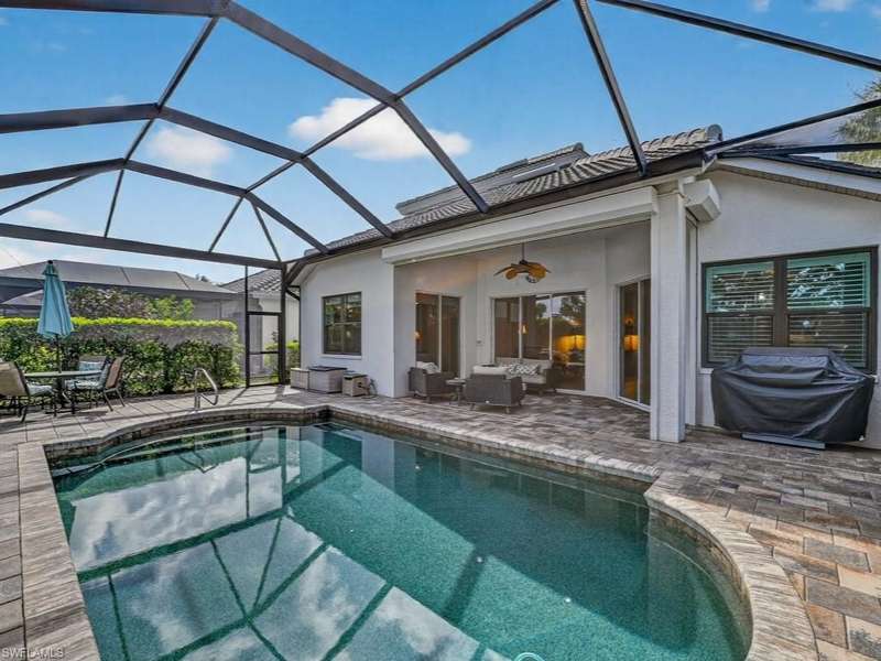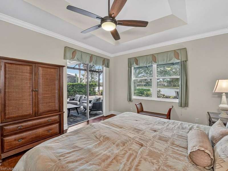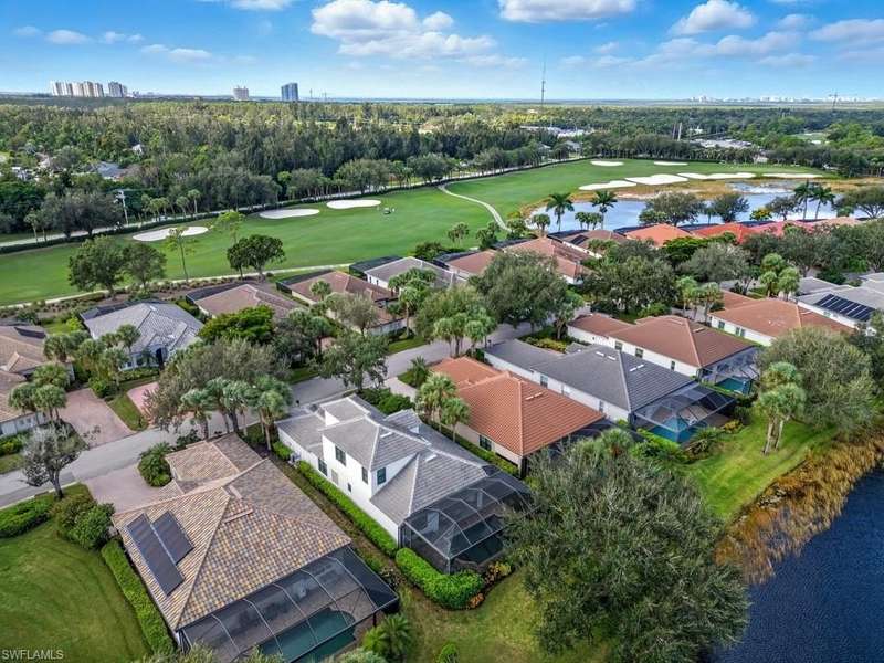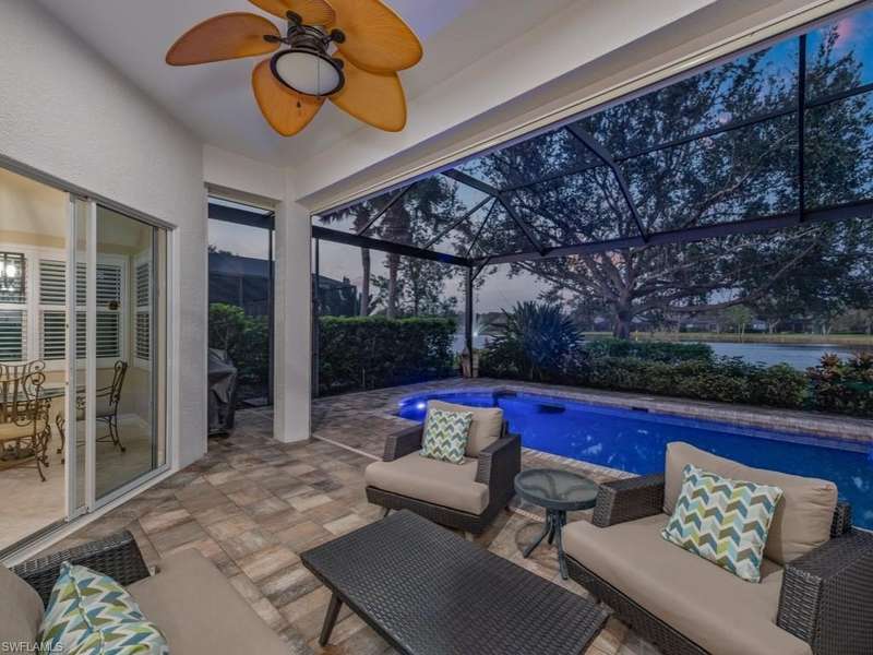 Welcome to this exceptional executive home in the Masters at Pelican Sound. Offering nearly 3,000 sq. ft. of living space, this fully furnished two-story residence features 3 bedrooms, 3 full baths, a versatile den, and a bonus loft. The spacious split floor plan includes a great room, plantation shutters throughout, and a chef’s kitchen with stone countertops, stainless steel appliances, an oversized island, and custom cabinetry. The primary suite is located on the ground floor for maximum convenience and privacy. Step outside to enjoy tranquil lakefront views from the screened lanai with picture window pool cage and private pool. Recent improvements include a newer roof (2020), two newer A/C units (2021), and a tankless hot water heater (2024). Additional highlights include full hurricane protection, a transferrable home warranty, and furnishings included for immediate enjoyment. Residents of Pelican Sound Golf & River Club enjoy world-class amenities including a 27,000 sq. ft. clubhouse, 27 holes of championship golf, a premier racquet center, fitness facilities, multiple dining venues, resort-style pools, River Club complex, boat launch and storage, and a complimentary beach shuttle. Ideally located west of U.S. 41, this home is just minutes from fine dining, shopping, I-75, RSW Airport, and Gulf beaches. A rare opportunity to own in one of Southwest Florida’s most desirable communities.