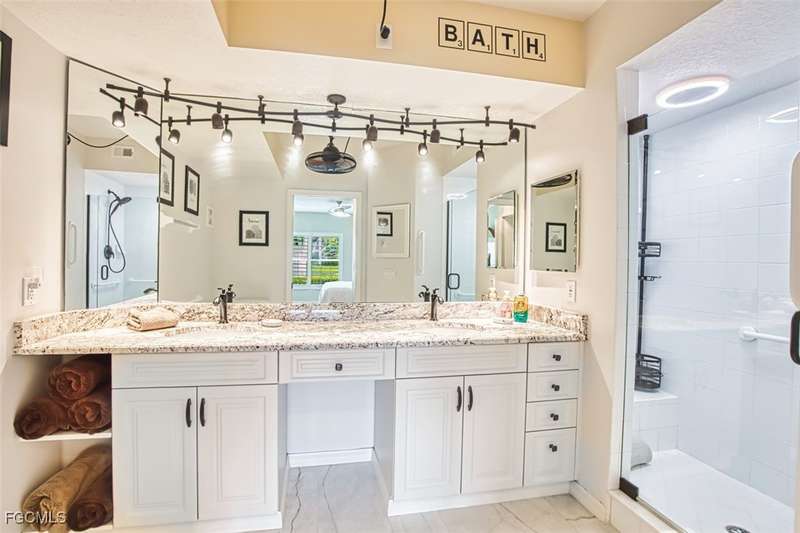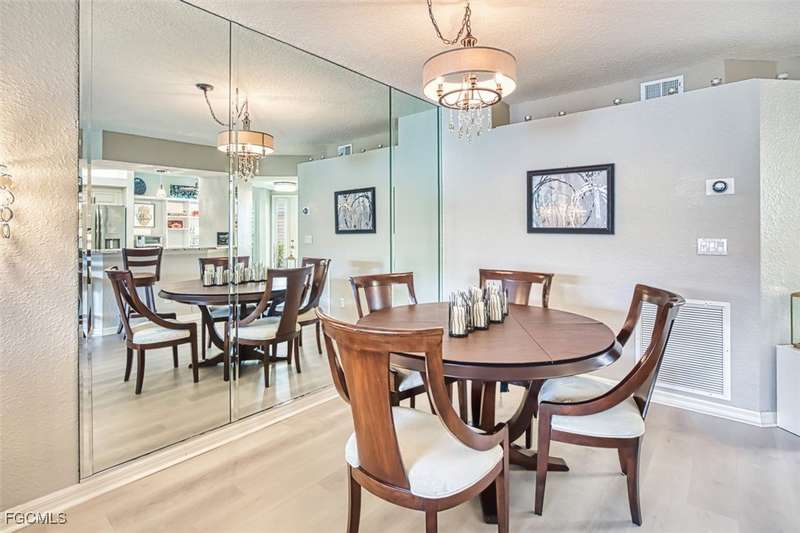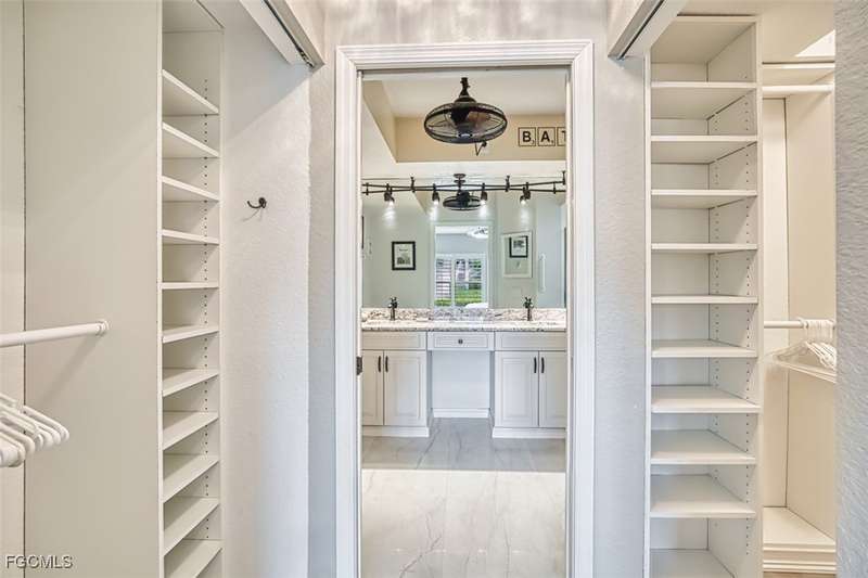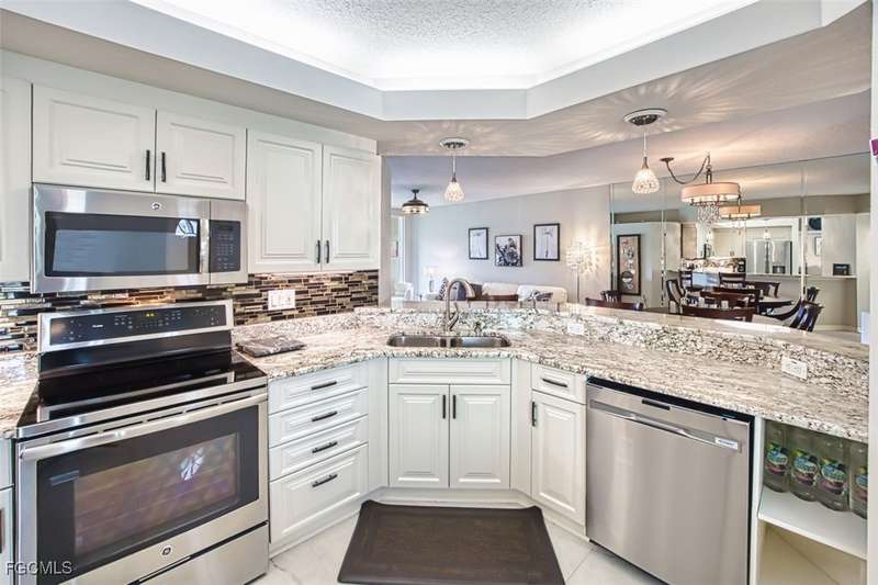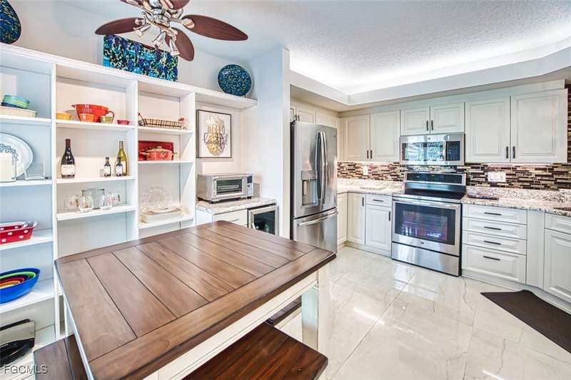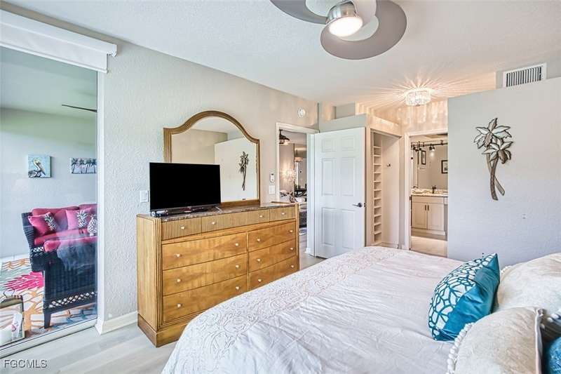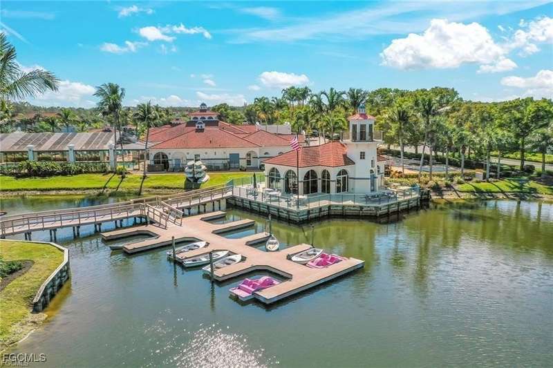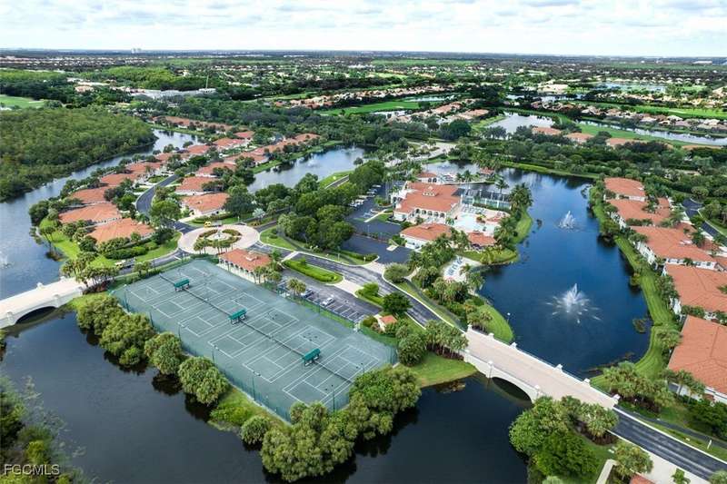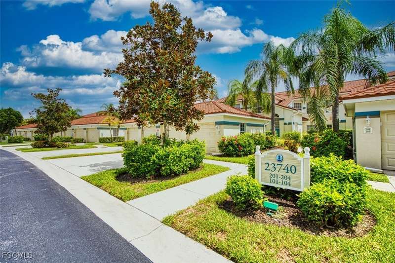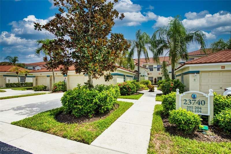 Exceptional Opportunity in the Heart of Estero. Step into this beautifully updated and redesigned 2-bedroom, 2-bath home in the sought-after community of Lighthouse Bay-just steps to the amenity center and complete with a one-car garage. From the moment you enter, you'll be impressed by the large-format porcelain tile and luxury wood-style vinyl flooring throughout. The open-concept layout features a beautiful kitchen with custom built-ins, added cabinetry, roll-out trays, and expanded workspace-all topped with premium-level granite. The lakeside lanai has been transformed into a sunroom with impact-resistant doors, offering serene views of the lake and fountain. All windows have been upgraded to impact glass for peace of mind and energy efficiency. The spacious owner's suite includes thoughtfully designed custom closets that maximize storage. The en-suite bathroom boasts dual sinks, upgraded cabinetry, and ample space for all your essentials. Premium lighting and fixtures throughout the home elevate the style, while the turnkey furnishings make moving in effortless. Lighthouse Bay offers a gated, resort-style lifestyle with five pools (including a lap pool), 2.5 miles of scenic walking and jogging paths, tennis courts with a pro, bocce, pickleball, two boat houses, fitness center, sauna, clubhouse, library, and an arts and learning center. Ideally located in the Village of Estero, this home is less than a mile from top-tier shopping and dining. It includes a Bronze Membership to The Brooks Commons Club, offering access to a private restaurant, enrichment programs, social events, pickleball, and more. You're just minutes from Coconut Point Mall, fine dining, entertainment, Southwest Florida International Airport, and the area's beautiful Gulf beaches-making this condo the perfect place to enjoy everything Southwest Florida has to offer.