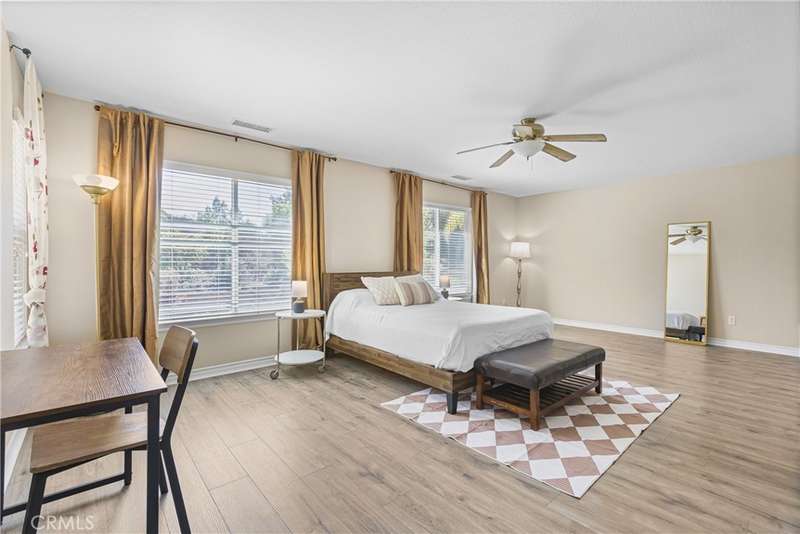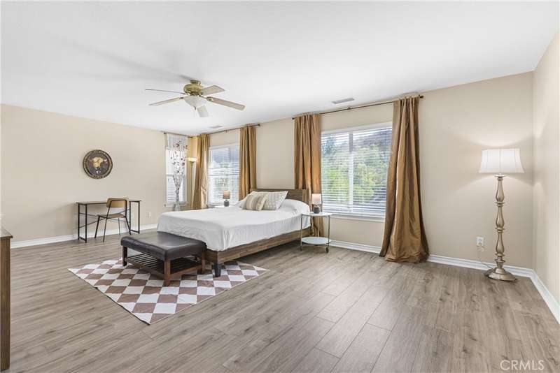 Perched in the prestigious Murrieta Oaks Hills, where gorgeous views and custom homes set the standard, this modern 5-bedroom, 4-bath estate commands attention as one of the community's rare cul-de-sac residences with gated RV parking and no neighbor in the back. Set in this exquisite Mello Roos enclave with no HOA, it offers nearly 3,400 sq. ft. of living space and the rare combination of privacy, sophistication, and convenience that today's buyers demand. Inside, every detail has been refreshed with modern upgrades, including brand new premium German-made waterproof wood flooring and custom finishes throughout. The flexible layout includes two expansive living areas, a formal dining room, a spacious loft, and two bonus rooms that can be tailored as home offices or creative spaces. The chef's kitchen features a generous center island, customized cabinetry, upgraded appliances, and a stylish coffee lounge. For entertainment, the family room doubles as a theater with a retractable 110" screen and ceiling-mounted projector. Upstairs, a private balcony overlooks the surrounding hillsides for a daily dose of serenity. The backyard blends privacy and charm with professionally landscaped grounds inspired by classic English gardens--perfect for outdoor gatherings or quiet evenings. An 8.4 kW solar system with 24 Longi panels ensures energy efficiency, eliminating power bills since 2022. The property has also been operated as a high-end executive rental, bringing in $6,630 per month, further underscoring its investment potential. With three garages, gated RV parking, close proximity to award-winning schools, Old Town Temecula, and world-renowned wineries, the lifestyle here is as effortless as it is exclusive. A private hiking trail just steps away completes the experience. As the owners prepare to relocate out of state, this is an incredible opportunity to secure a property of this caliber in Murrieta Oaks Hills--at a price rarely seen in this prestigious enclave.