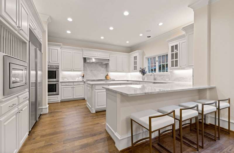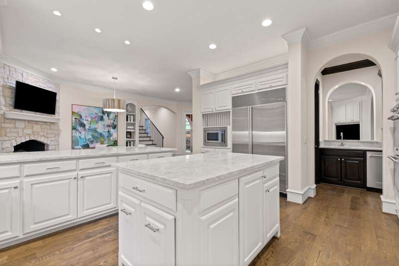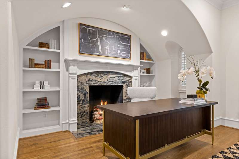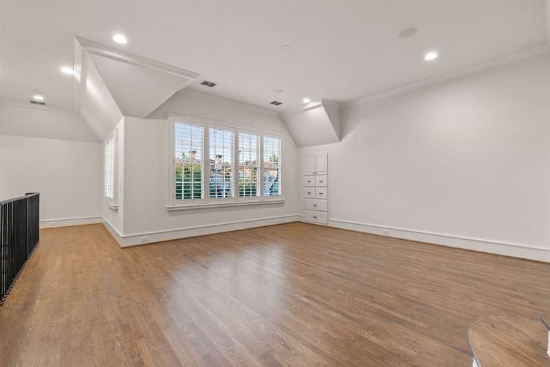 Recently reimagined with timeless elegance & refined design, this stunning Highland Park Gage home is a true masterpiece. Thoughtfully updated within the past year, it showcases exceptional craftsmanship, sophisticated finishes, and meticulous attention to every detail. Perfectly positioned on a picturesque 60x150 lot just one block from Armstrong Elementary, this 5 bed, 6.1 bath residence effortlessly blends classic architecture with modern luxury. From the moment you arrive, the homes signature faadewith its inviting covered porch, charming arbor, and graceful stone accentssets the tone for the beauty within. Step inside to a warm and welcoming entry, where chevron-patterned hardwood floors lead the way. The elegant dining room, crowned with a cove ceiling and framed by French doors, opens to lush outdoor views, creating a seamless indoor-outdoor experience. The heart of the home is the expansive family room, anchored by a striking fireplace and flowing effortlessly into the light-filled breakfast area and chefs kitchen. Designed for entertaining, the kitchen boasts premium stainless-steel appliances and a butlers pantry with a wet bar. A powder bath and a versatile downstairs bedroom with Murphy Bed and ensuite bathalso ideal as a pool bathcomplete the main level. Upstairs, the luxurious primary suite feels like a private sanctuary, featuring dual spa-inspired bathrooms and custom his-and-hers closets. The second level also includes a spacious family game room, two generous bedrooms with ensuite baths, and a beautifully expanded utility room and flex spaceeach thoughtfully curated by Nickey Oates. On the third level, a fifth bedroom and full bath offer privacy and comfort for guests or extended family. Every space in this exceptional home has been designed to inspirecombining timeless architecture, graceful flow, and modern comfort to create an atmosphere of understated elegance and everyday ease.